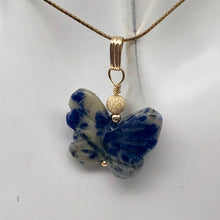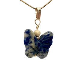 ADORABLE! Hand-Carved Natural SODALITE Butterfly 14Kgf Pendant!