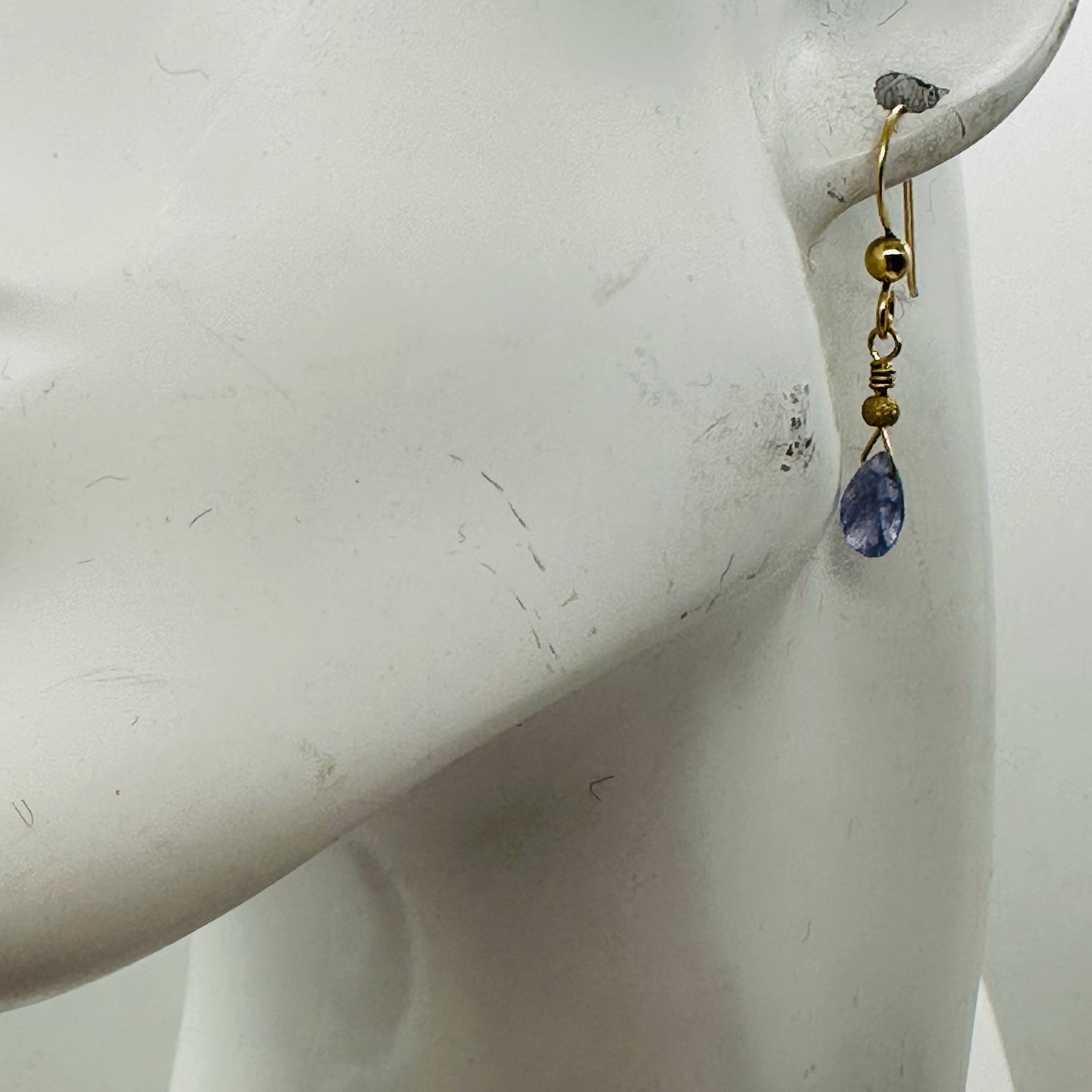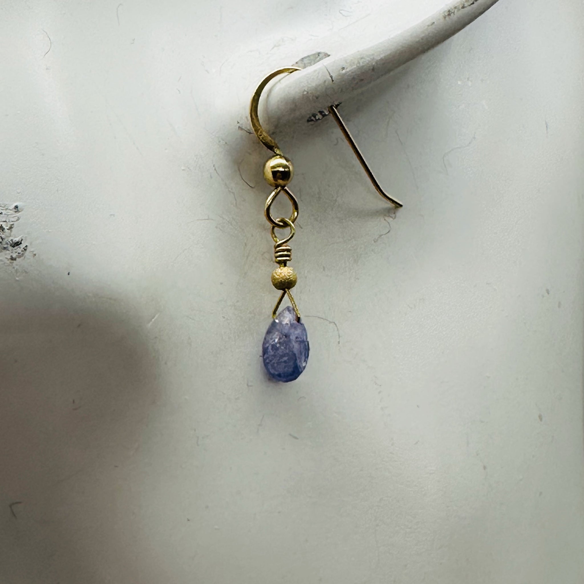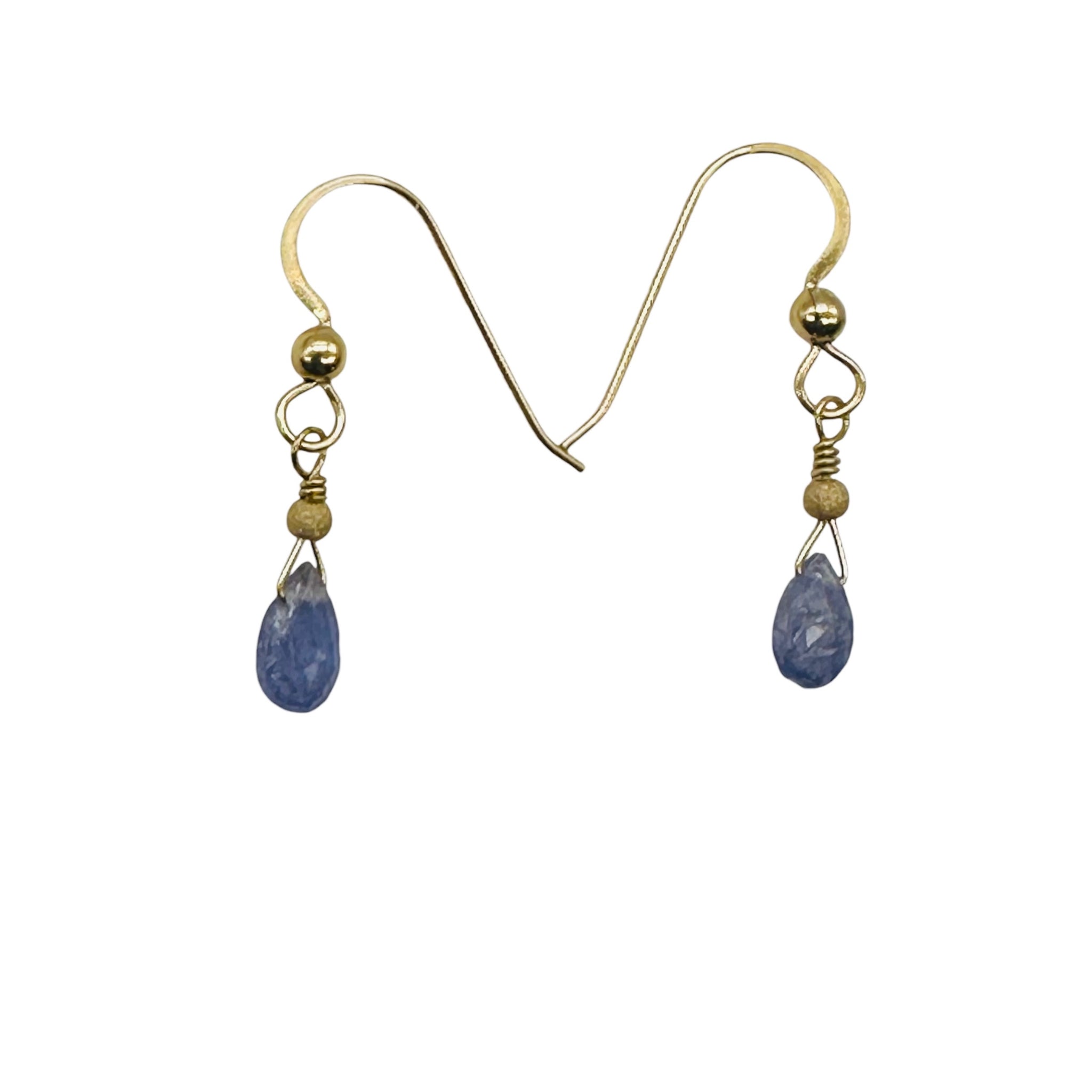 These charming 14K gold filled drop earrings feature luminous lavender Tanzanite beads. Designed with yellow gold fish hook ear wires for comfort and ease, these earrings offer timeless elegance with a graceful, delicate swing. Their soft color palette makes them perfect for both everyday wear and special occasions.