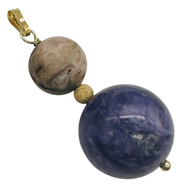 Charoite AAA Large Round 14K Gold Filled Pendant | Purple, White | 1 1/2" Long |