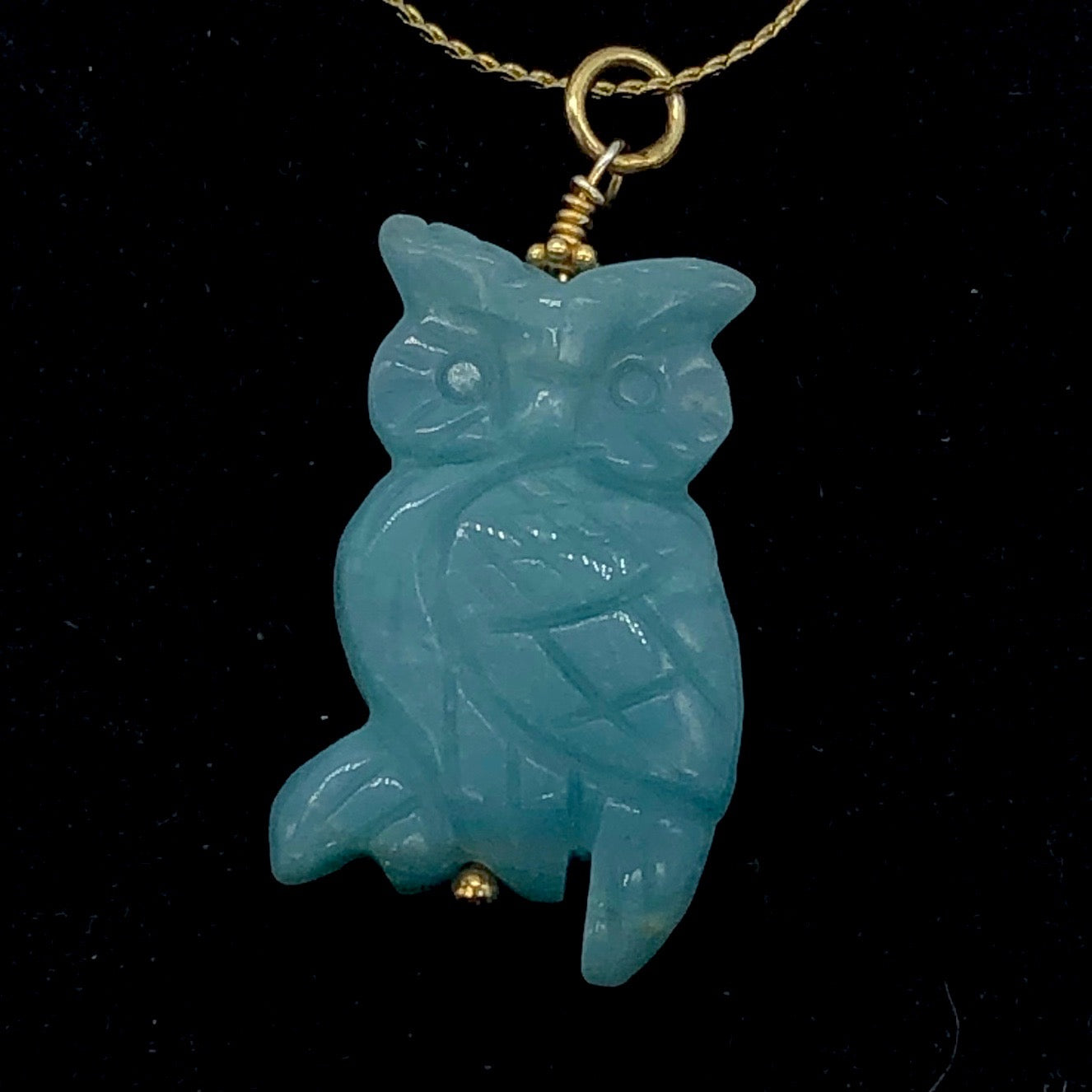 WISDOM! Hand Carved Blue AMAZONITE Owl 14kgf Pendant.