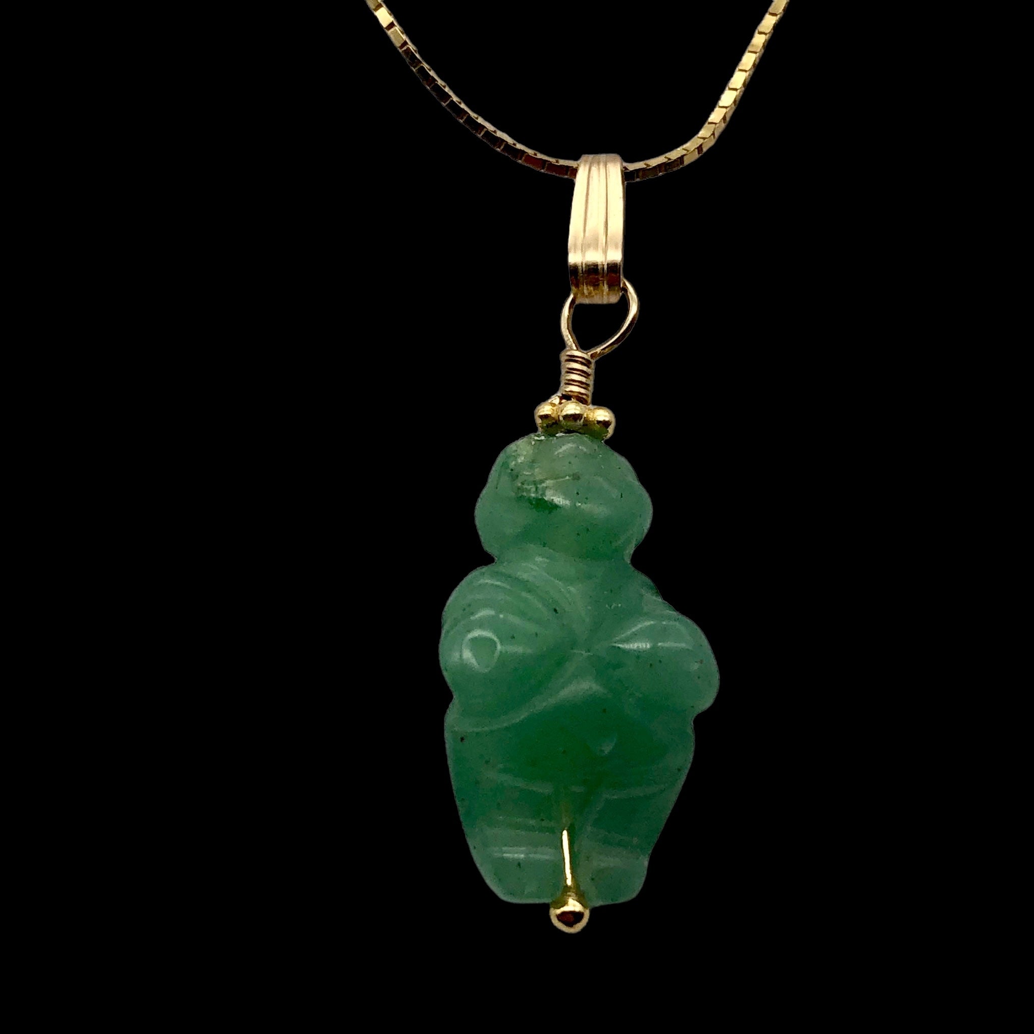 Aventurine Goddess of Willendorf 14Kgf Pendant |1.38" Long | Green |