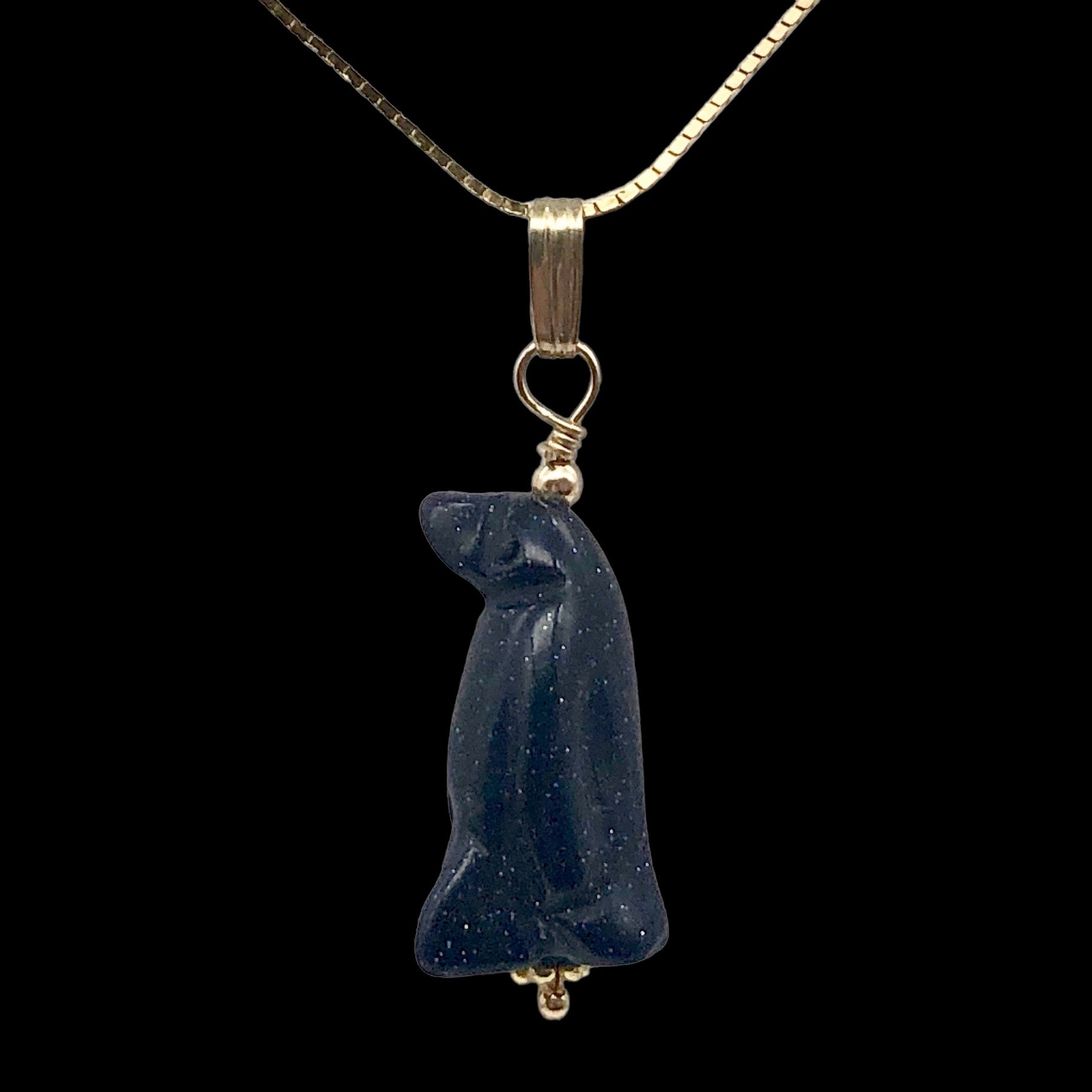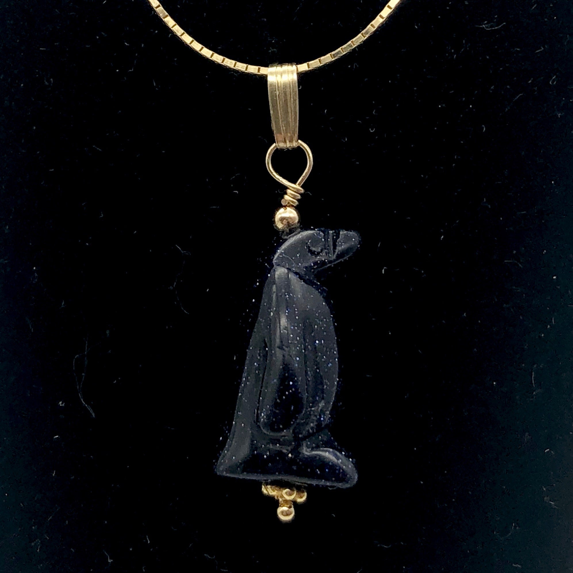 This is for one hand carved Penguin & 14Kgf Pendant. The hand carving is exquisitely executed. This pendant of Sparking Blue Gold Stone will add beauty and uniqueness to any wardrobe. Don't miss out on this charming pendant!!