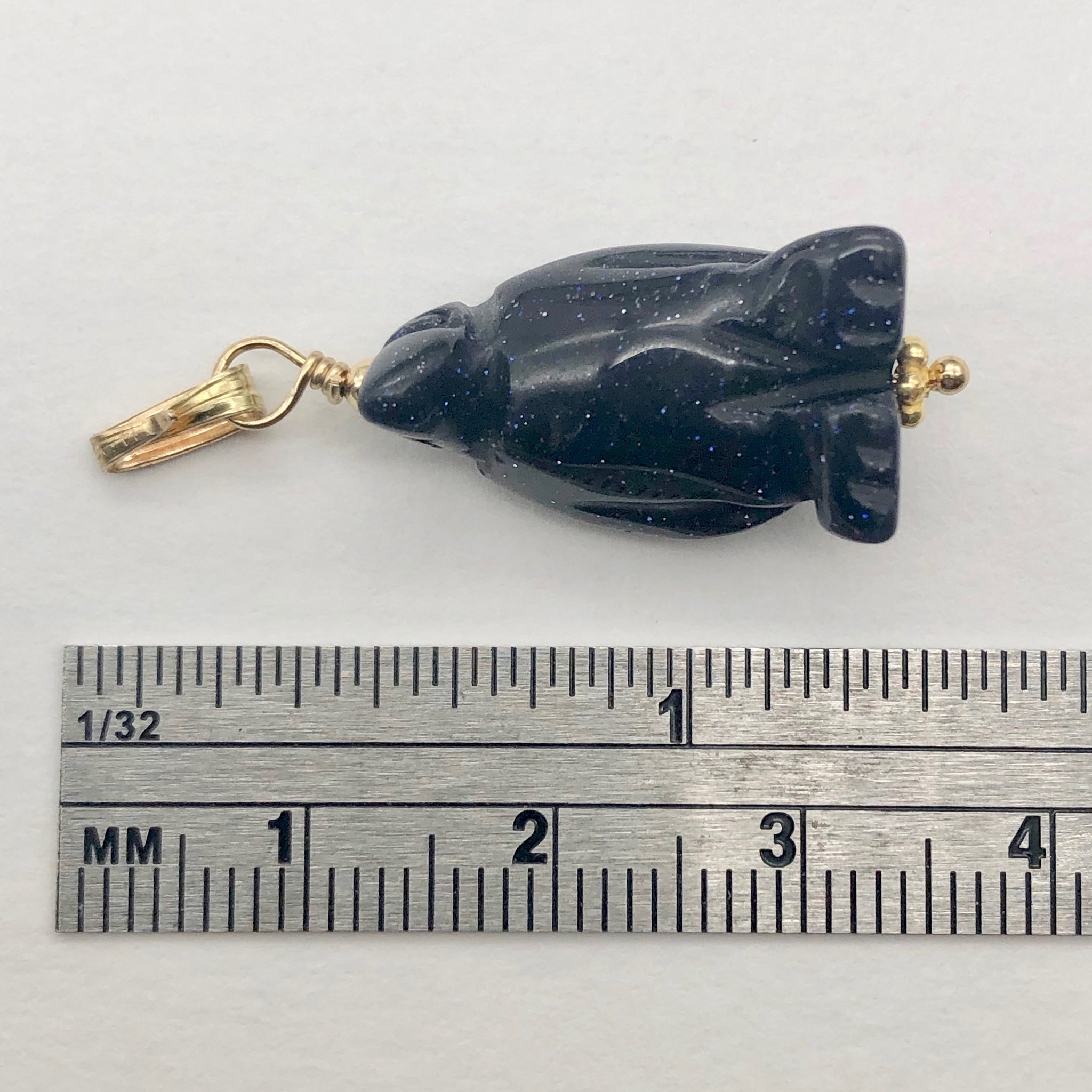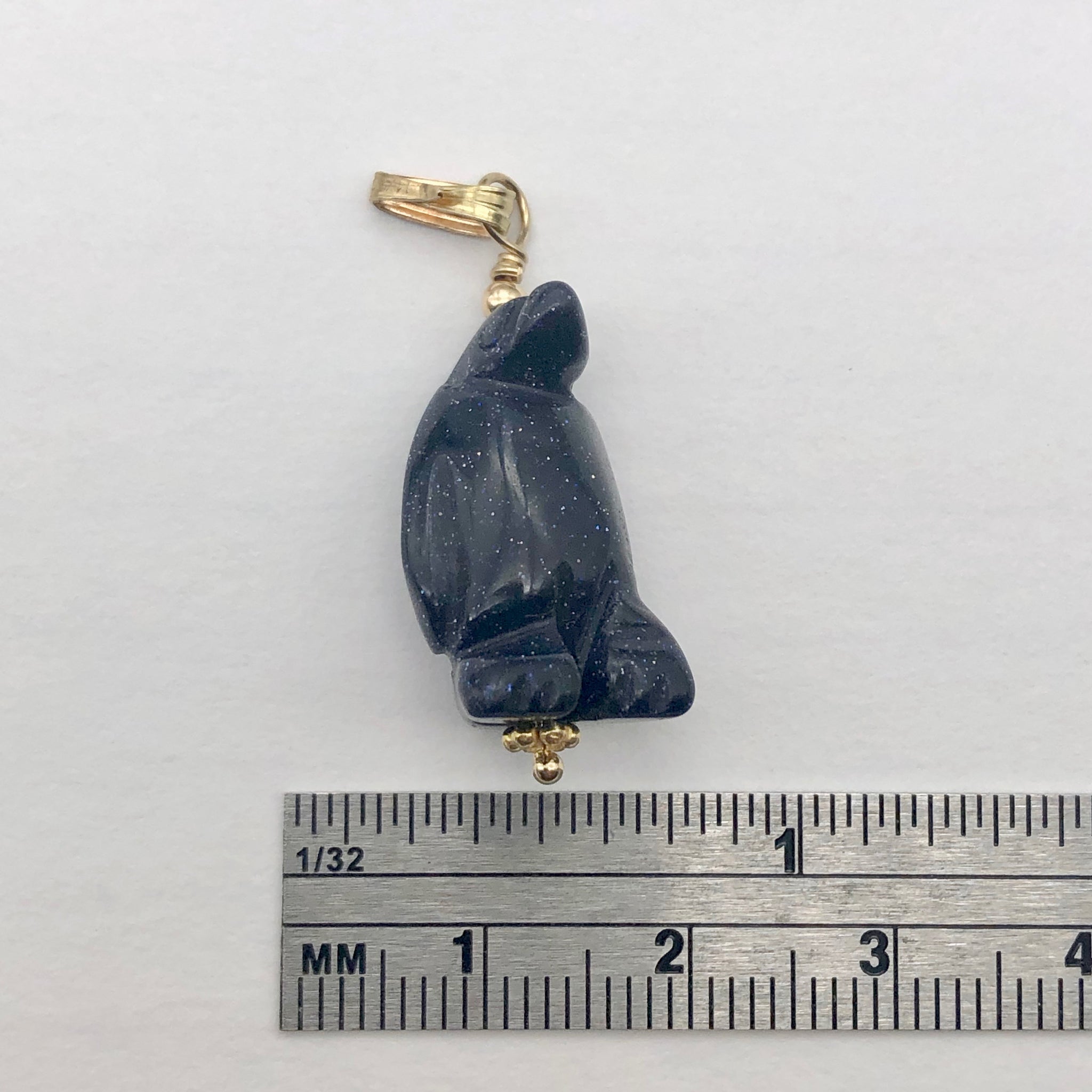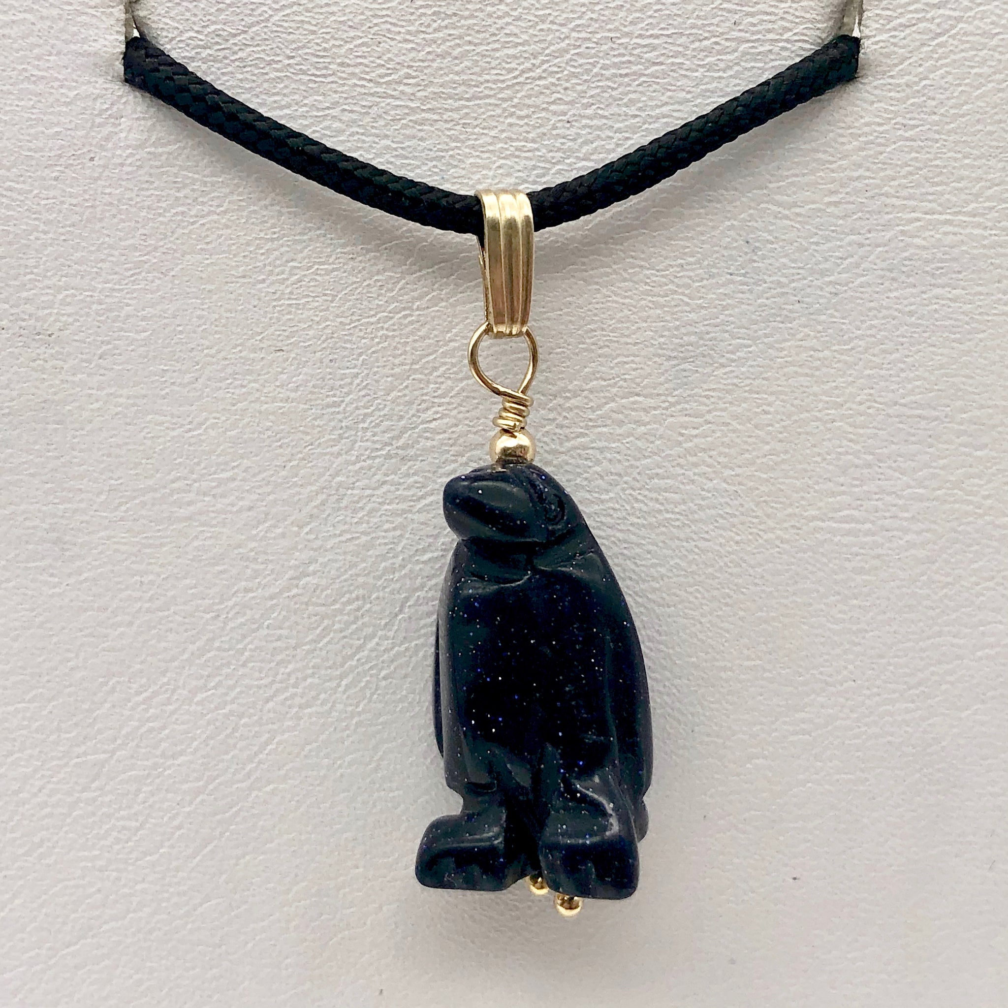 Marching Hand Carved Blue Gold Stone Penguin & 14Kgf Pendant!