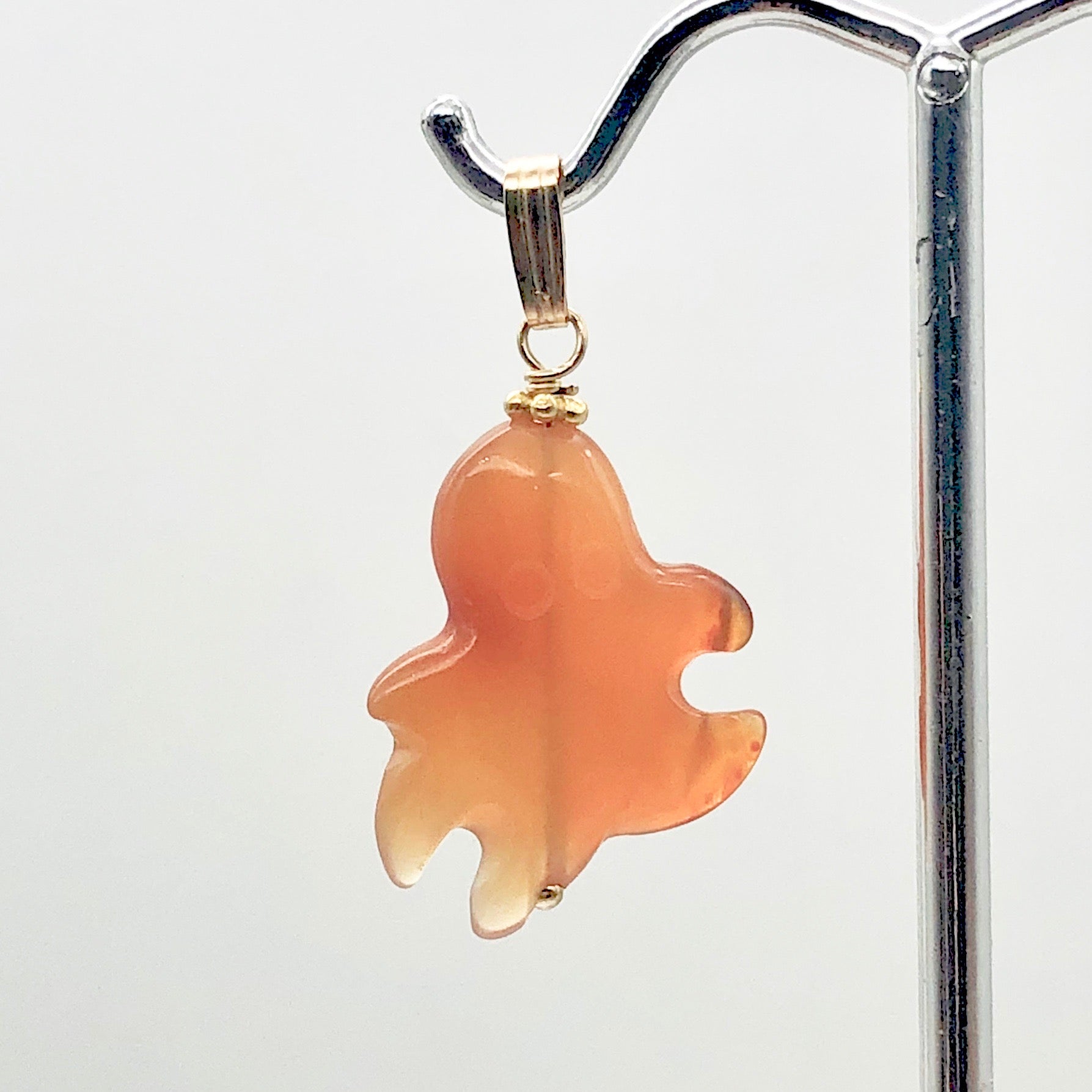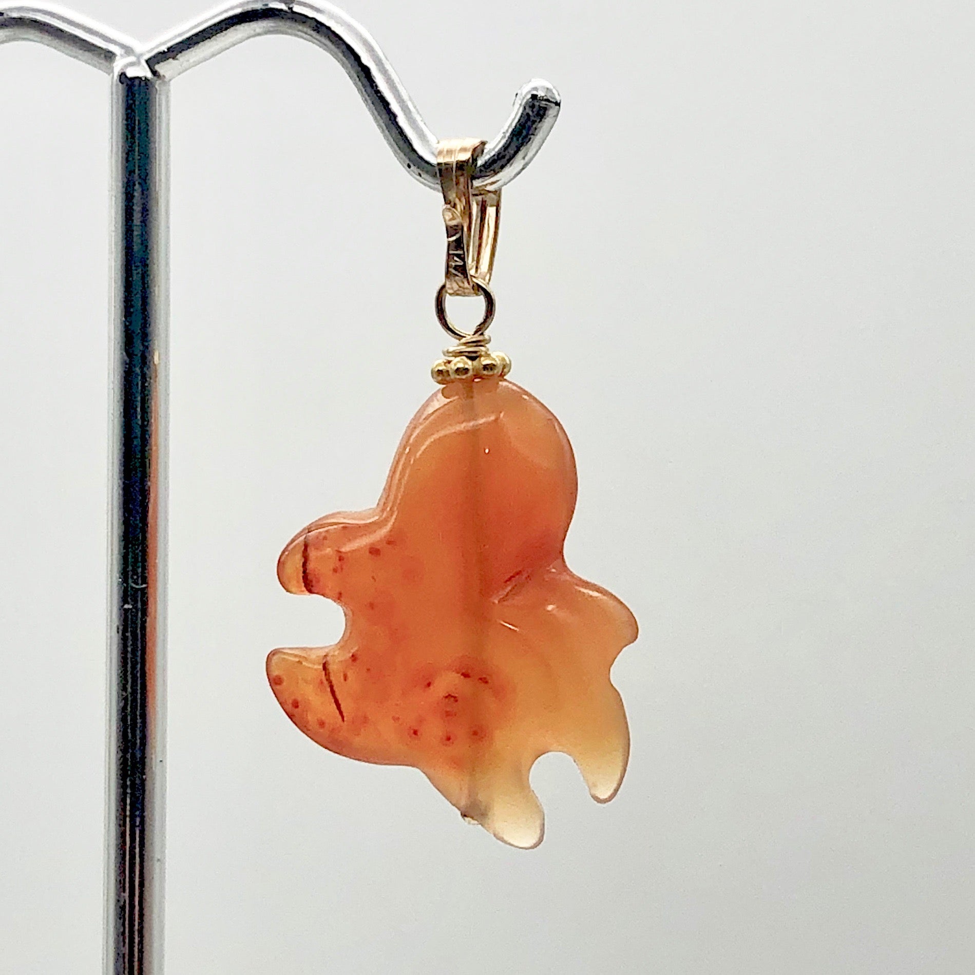 Carved Red Orange Carnelian Octopus 14Kgf Pendant!