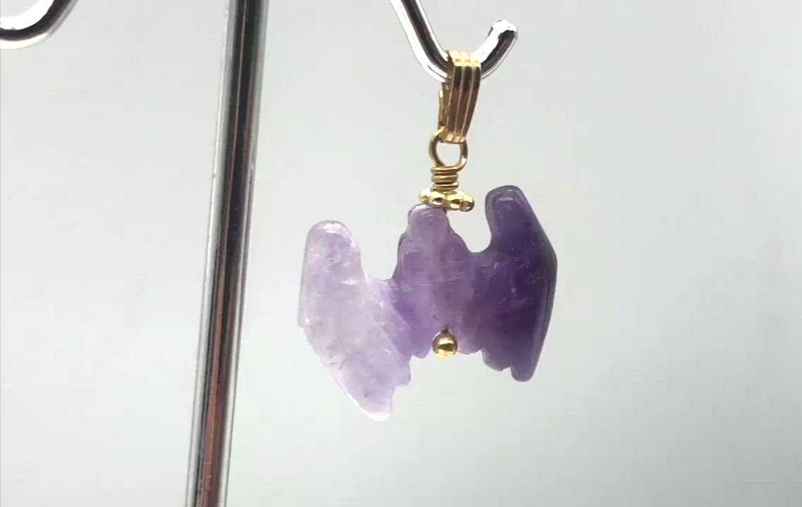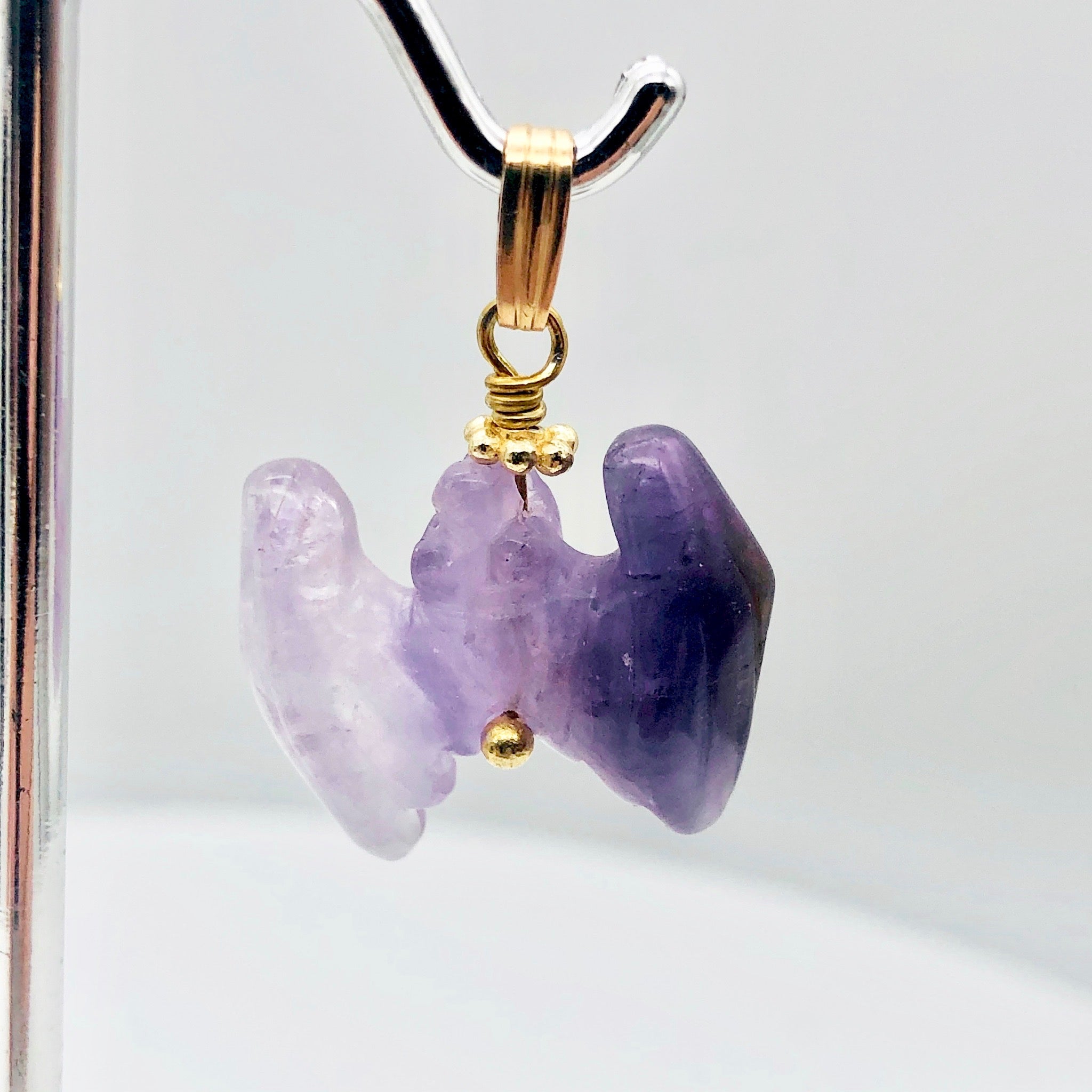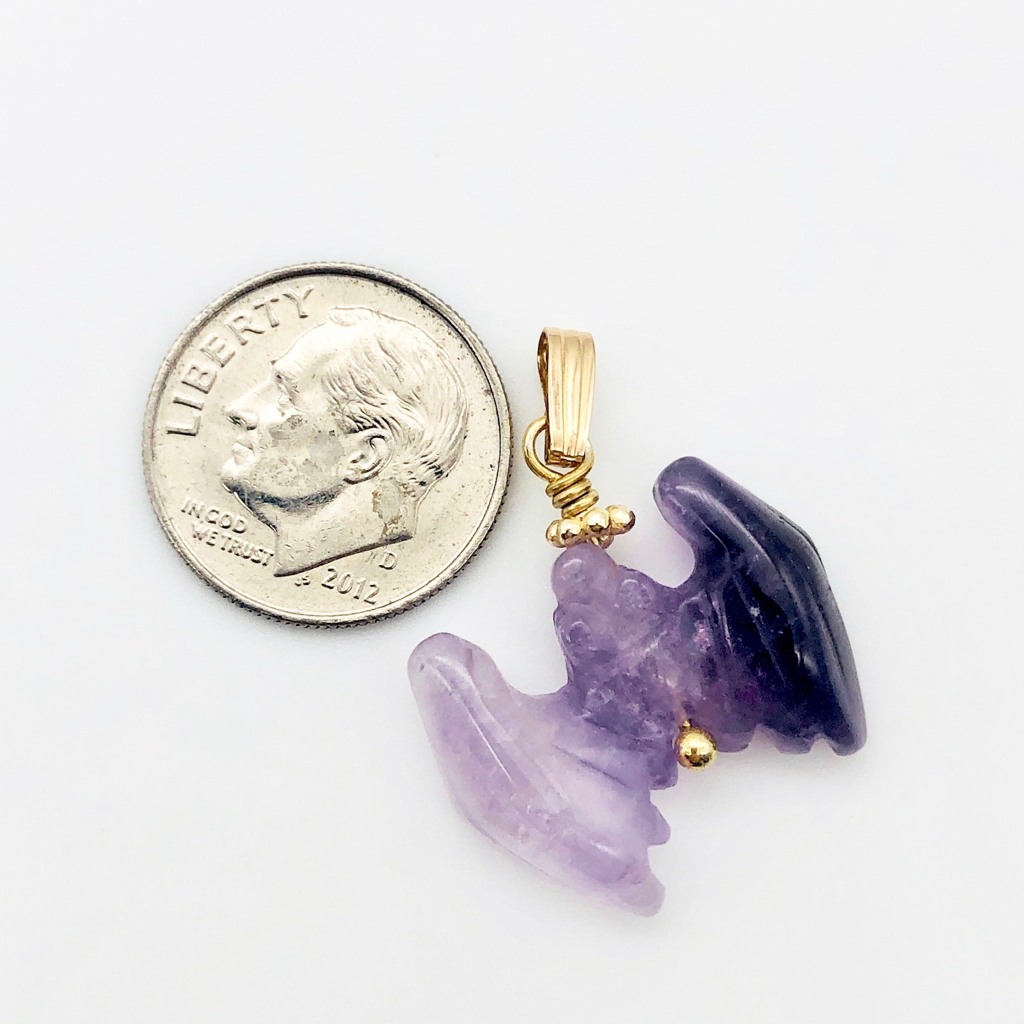 Beautiful Hand-carved AMETHYST BAT 14Kgf Pendant!