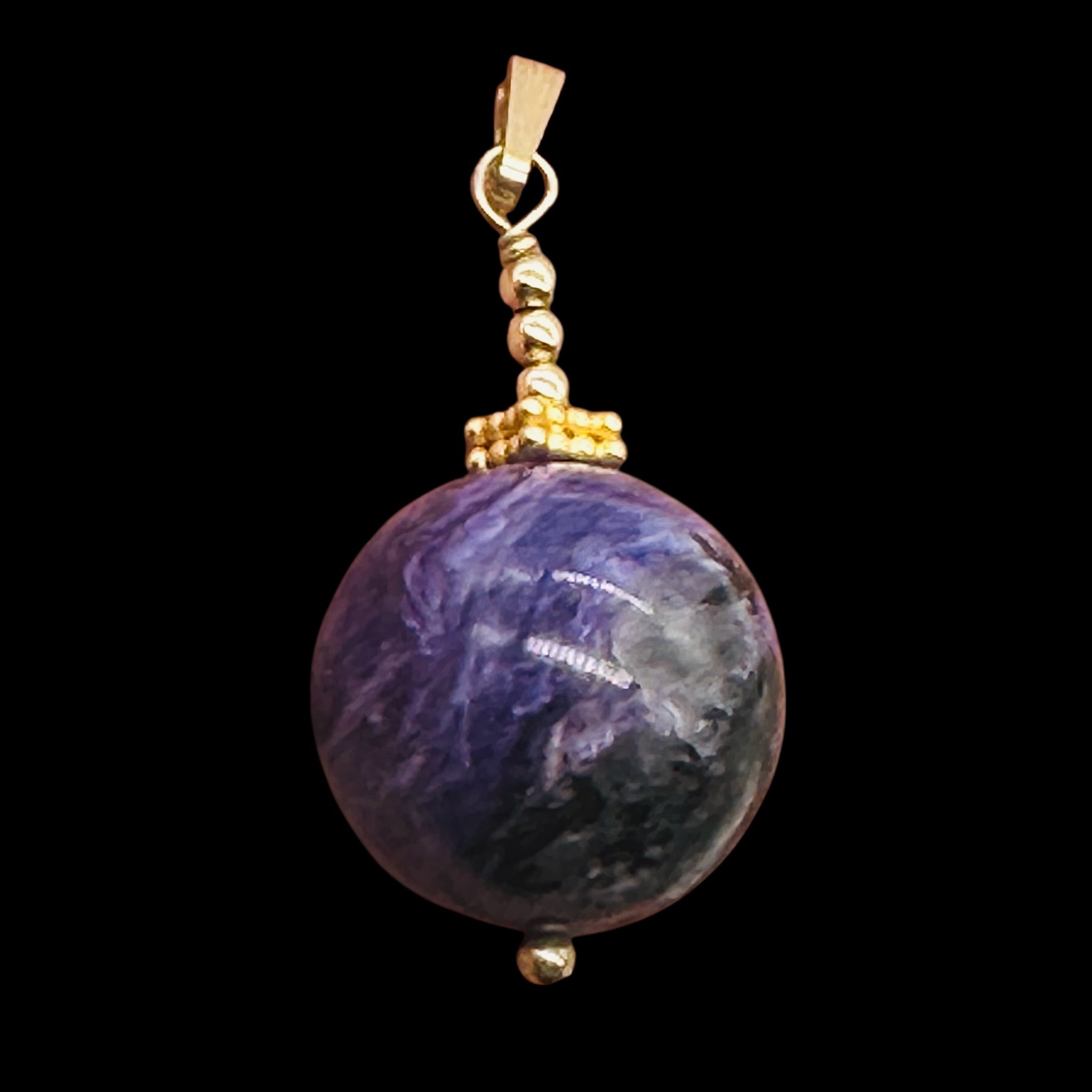 CHAROITE AAA LARGE ROUND 14K GOLD FILLED PENDANT!!!