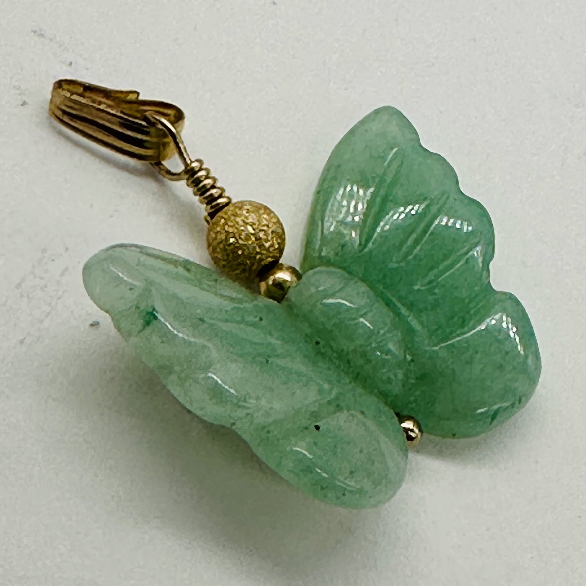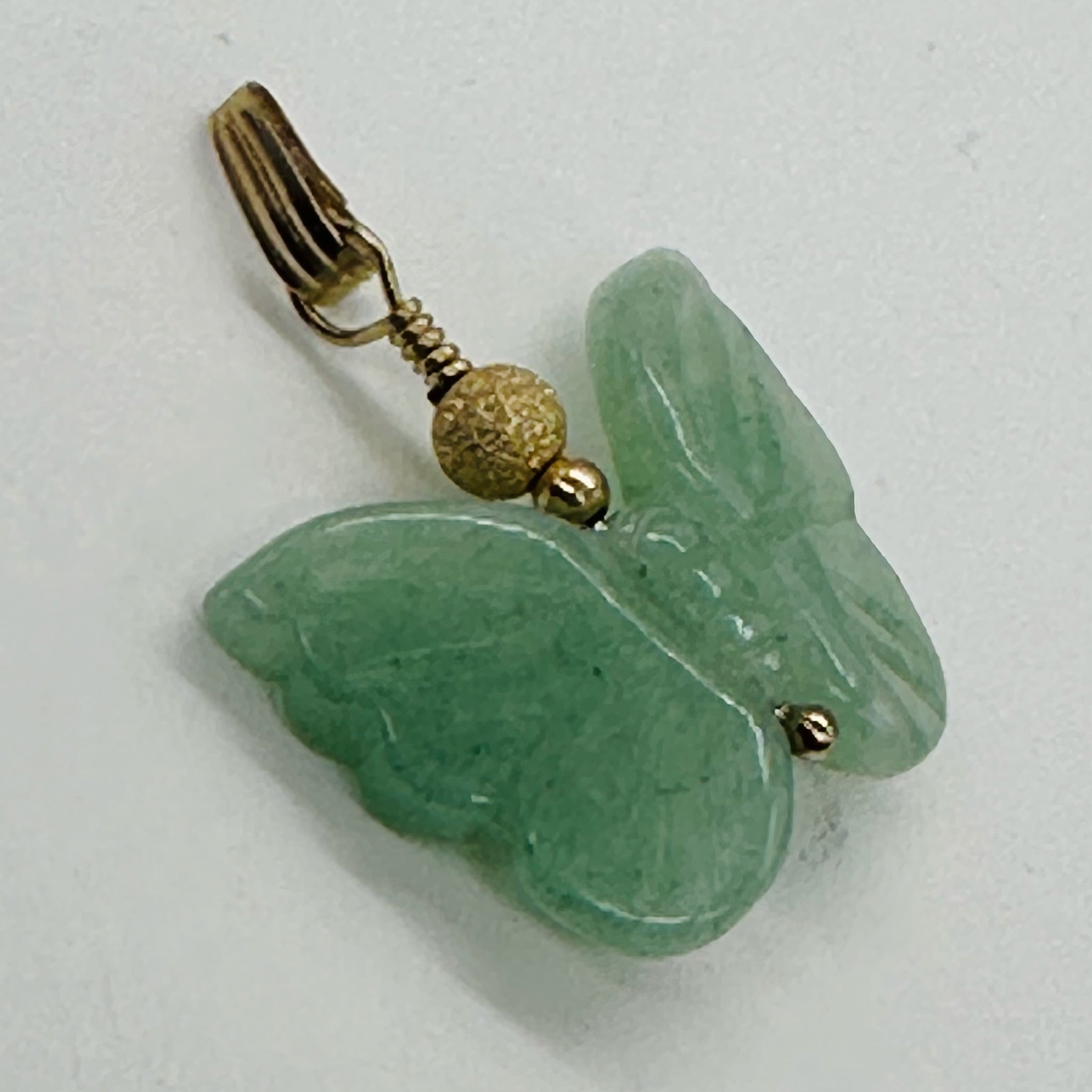 This is for a hand made Aventurine BUTTERFLY and 14Kgf Pendant! The hand carving is exquisitely executed and makes a wonderful pendant that will add beauty and uniqueness to any wardrobe. Don't miss out on this charming pendant!!