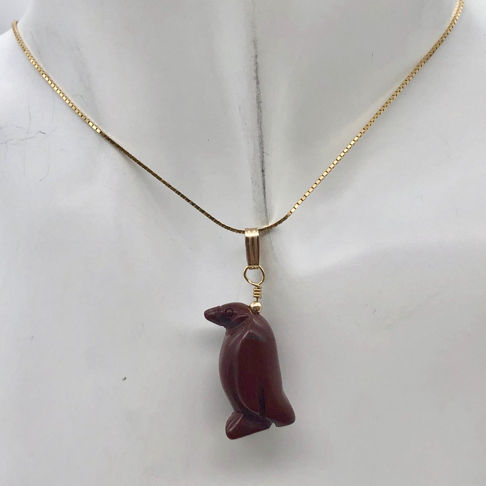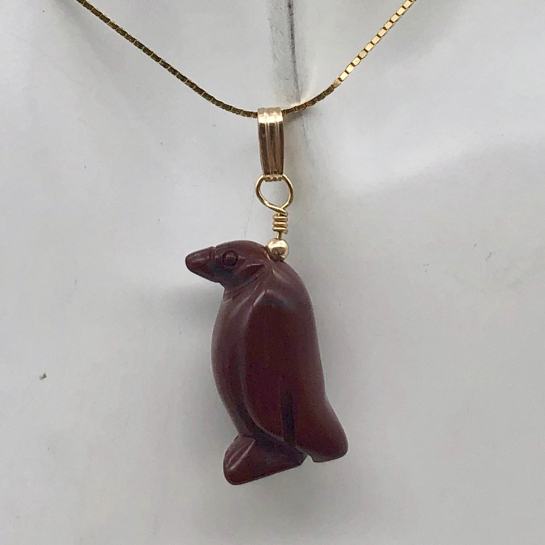 Marching Hand Carved Brecciated Jasper Penguin & 14Kgf Pendant!