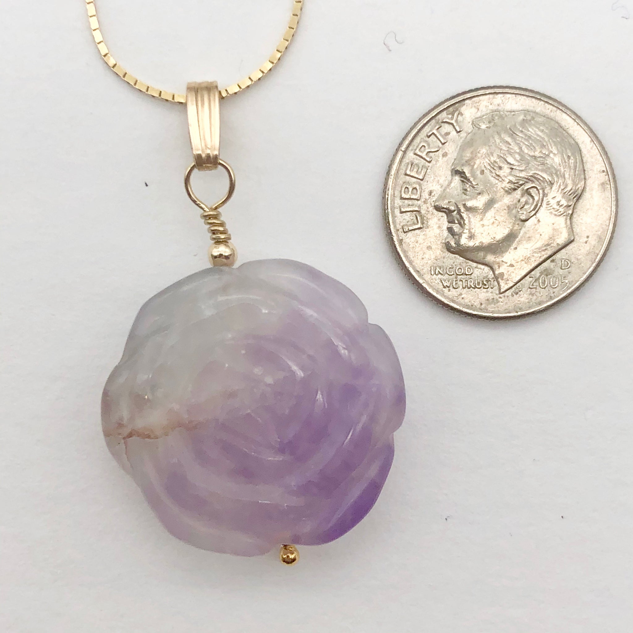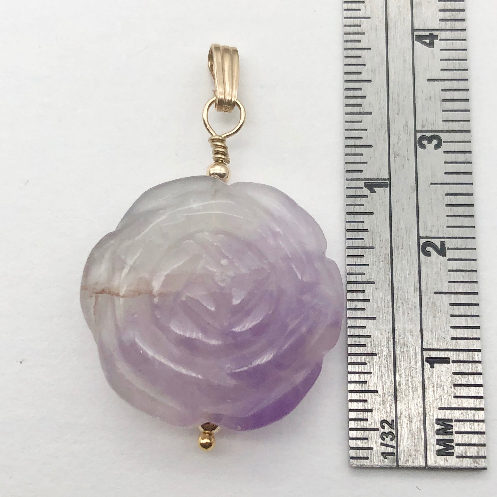 Beautiful! Hand-Carved Natural AMETHYST 14Kgf Rose Pendant!