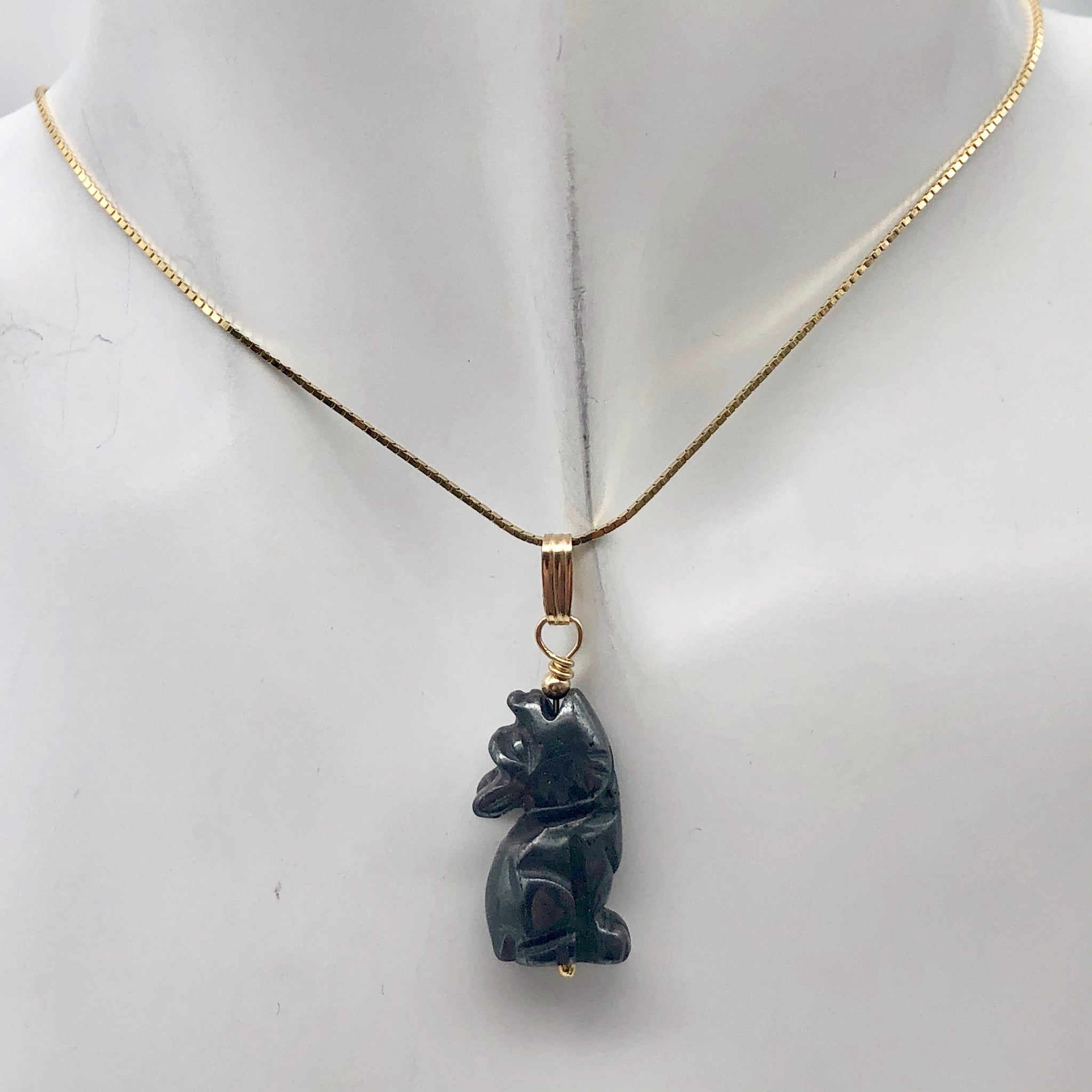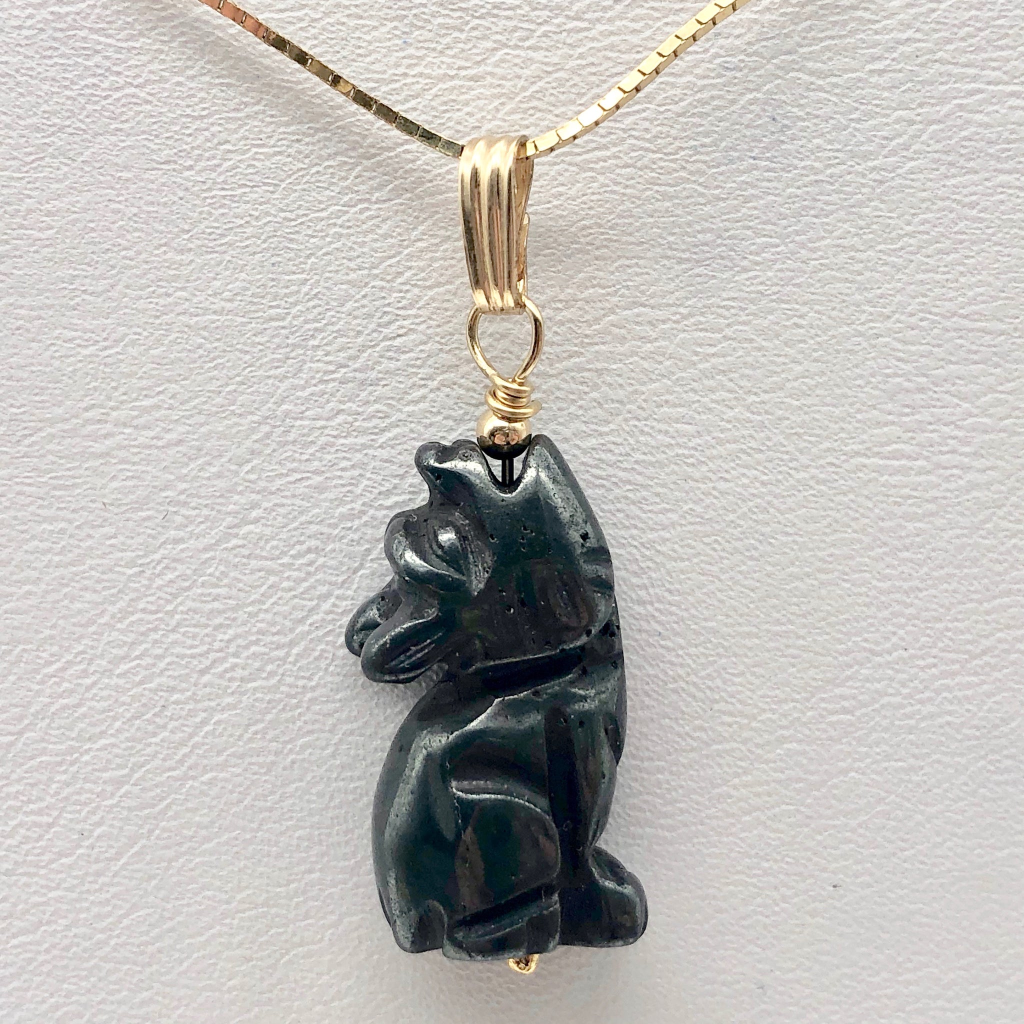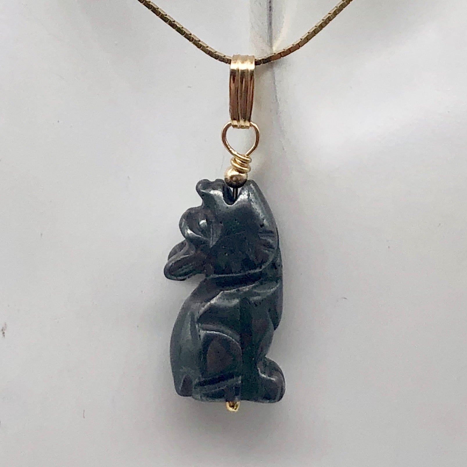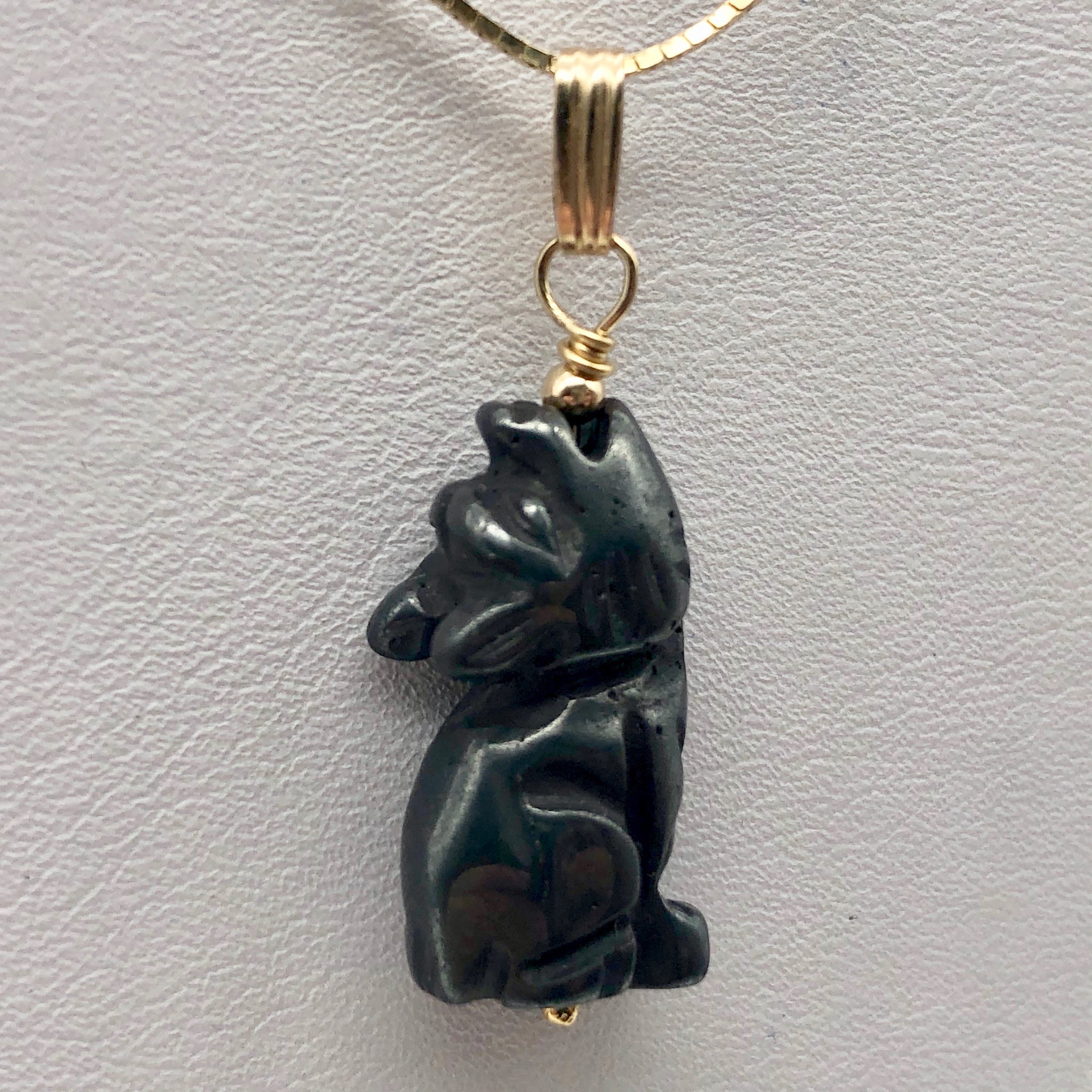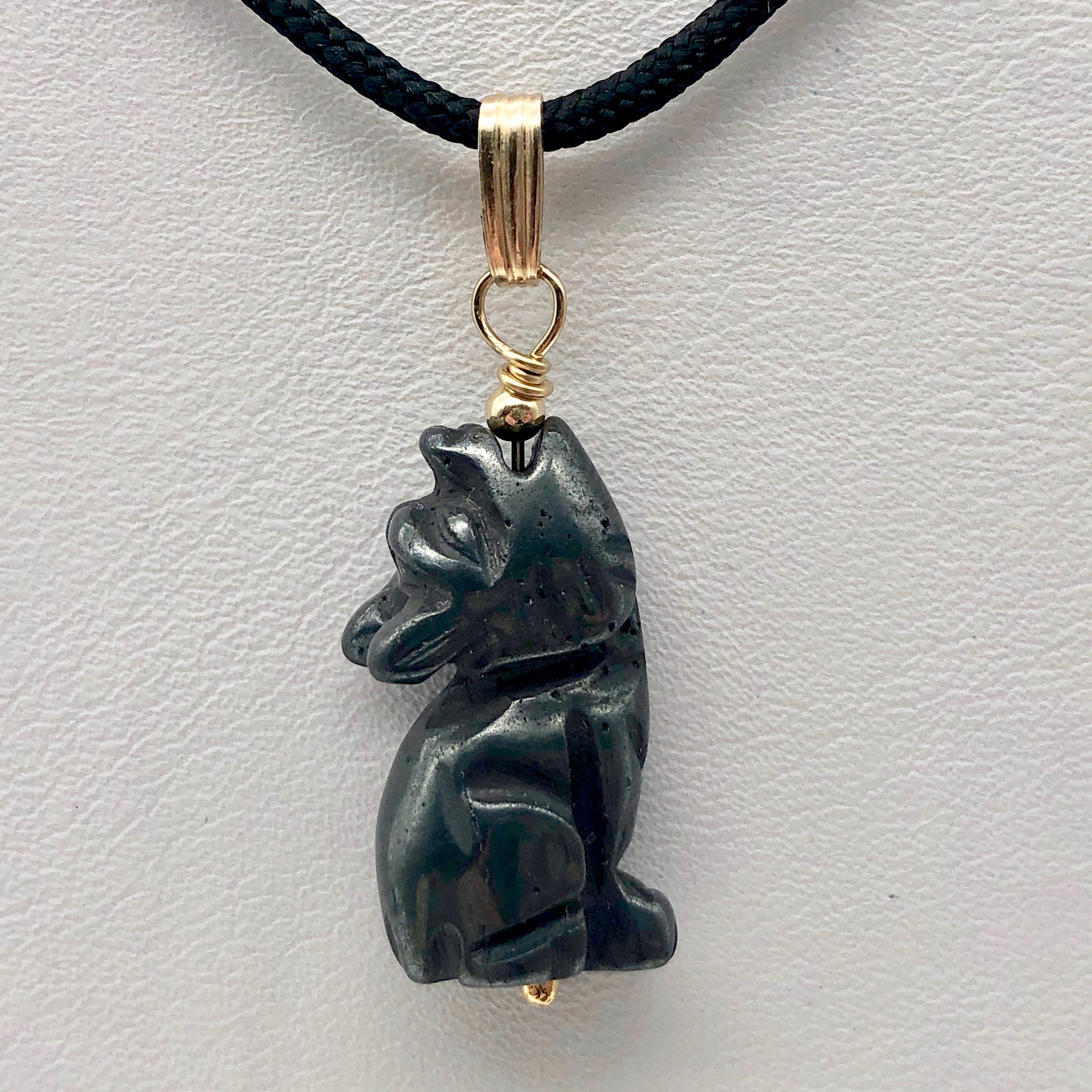 This is for one hand carved Hematite Wolf/Coyote & 14Kgf Pendant. The hand carving is exquisitely executed. This pendant of lovely Hematite will add beauty and uniqueness to any wardrobe. Don't miss out on this charming pendant!!