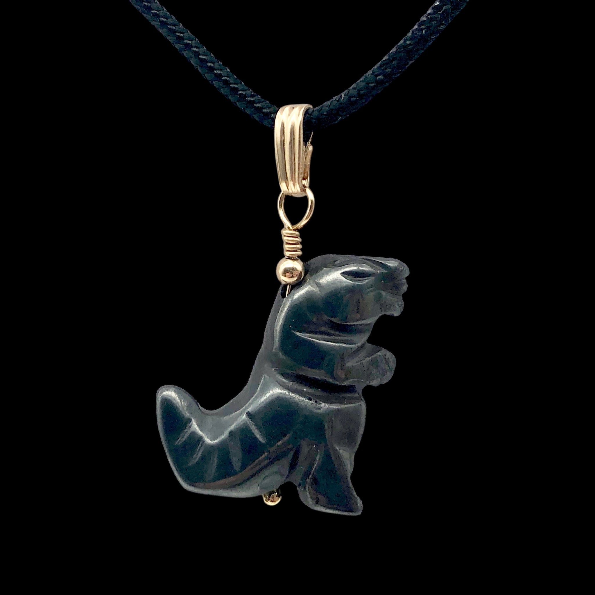 This is for one Hand carved Hematite Tyrannosaurus Sterling Silver pendant! This animal fetish t-rex pendant will add that touch of whimsy to your wardrobe!