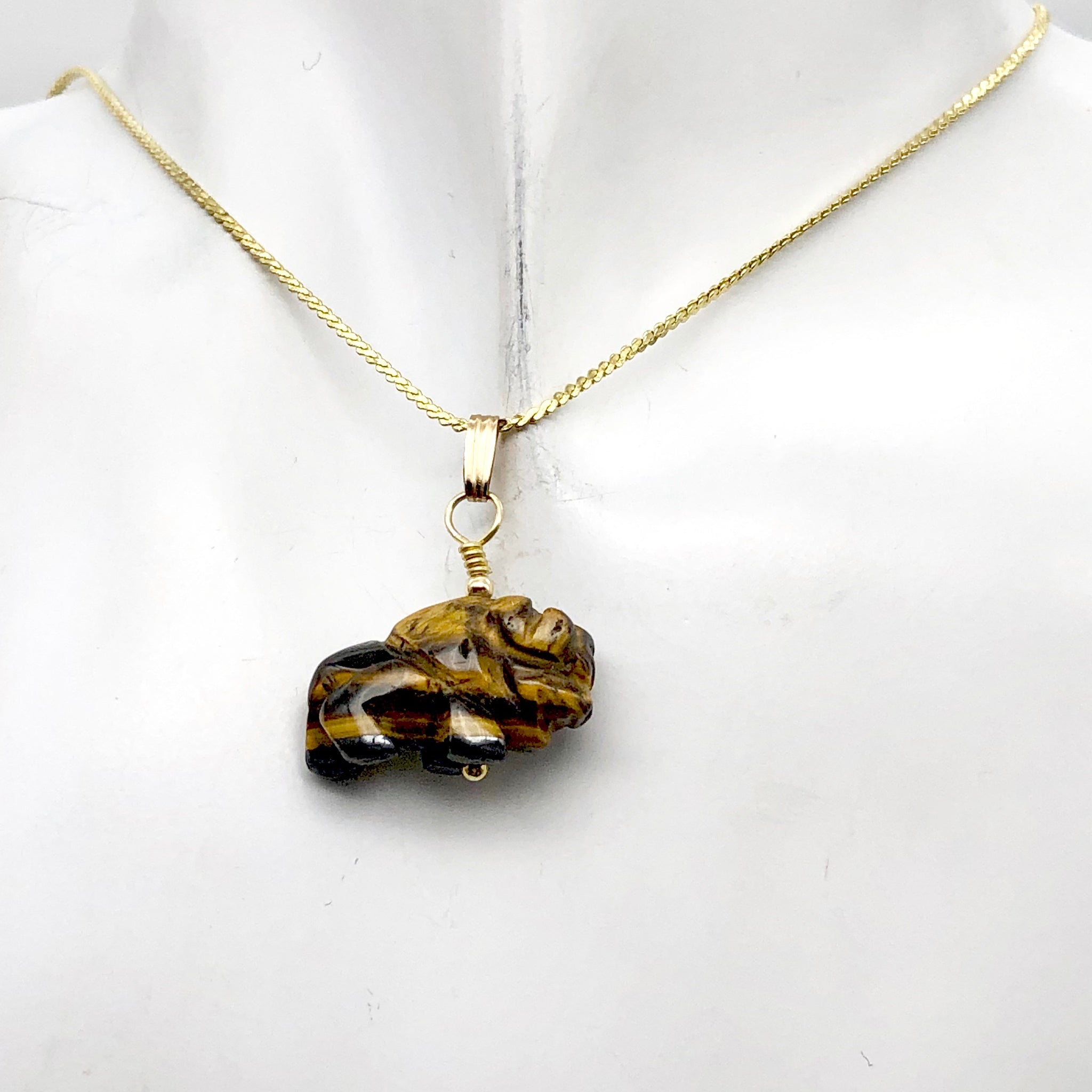STURDY!! TIGEREYE STONE Carved Buffalo / Bison Pendant!!