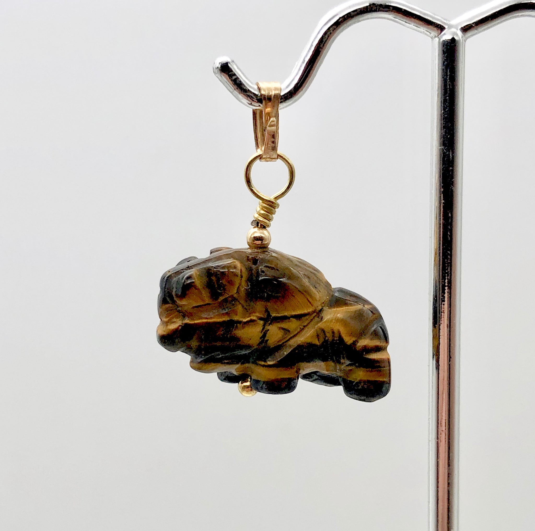 This is for 1 Hand carved TIGEREYE Buffalo / Bison Bead combined with 14K Gold Filled findings for an amazing Pendant! The Bison is like a hologram - one example of abundance - it's behemoth features are a physical manifestation of the store-holds available in the energetic realms. This Fetish Pendant is wonderful and will bring abundance to the wearer! Spirit animal.