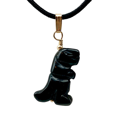 Black Obsidian T- Rex Pendant Necklace|Semi Precious Jewelry| 14k gf Pendant |
