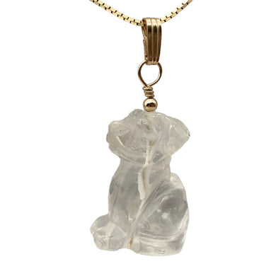 Semi Precious Stone Jewelry Faithful Dog Pendant Necklace of Quartz/14kgf