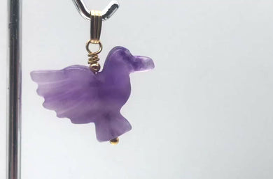 Lovely Hand Carved Amethyst Dove Bird Pendant | 1.5 inches (Long) | Purple |