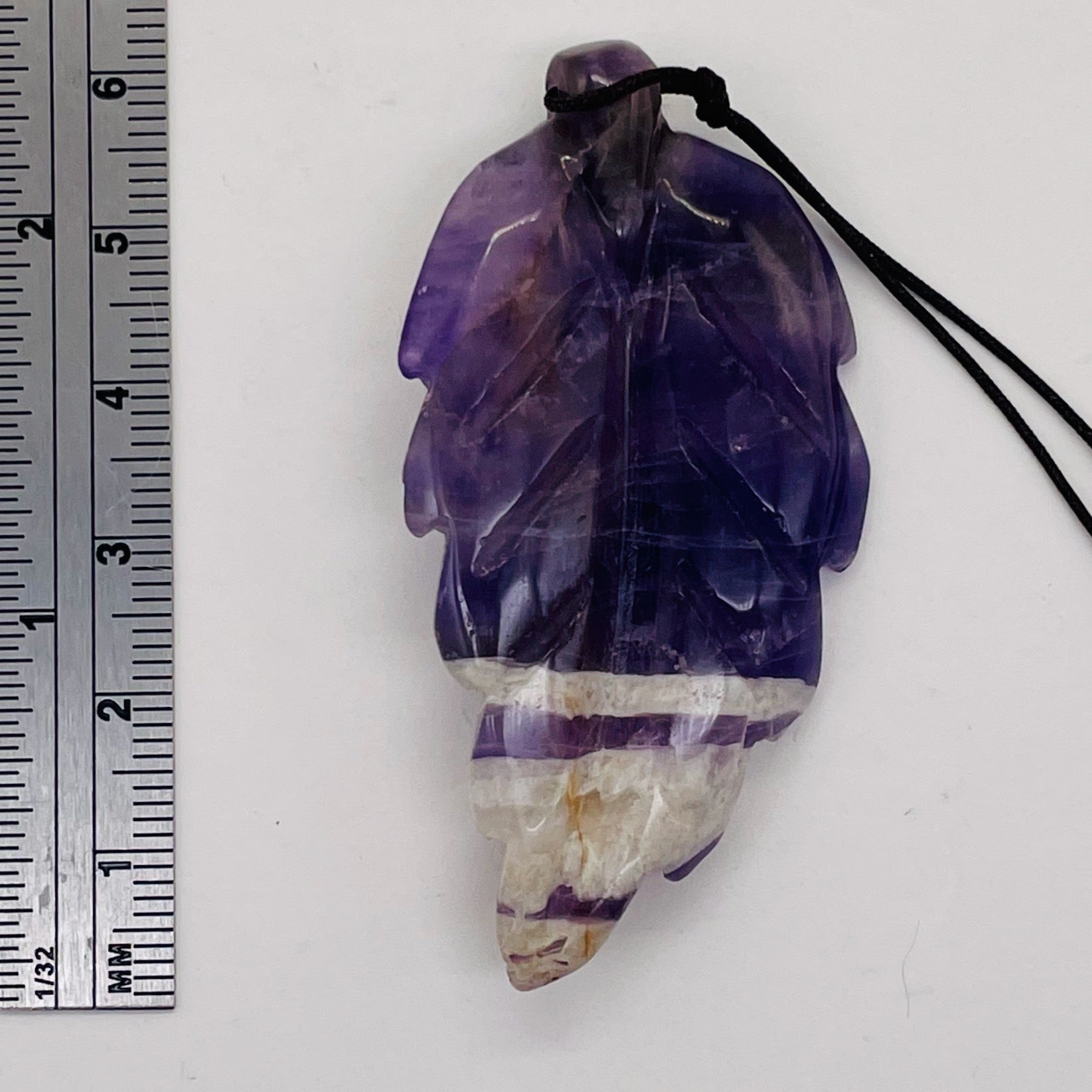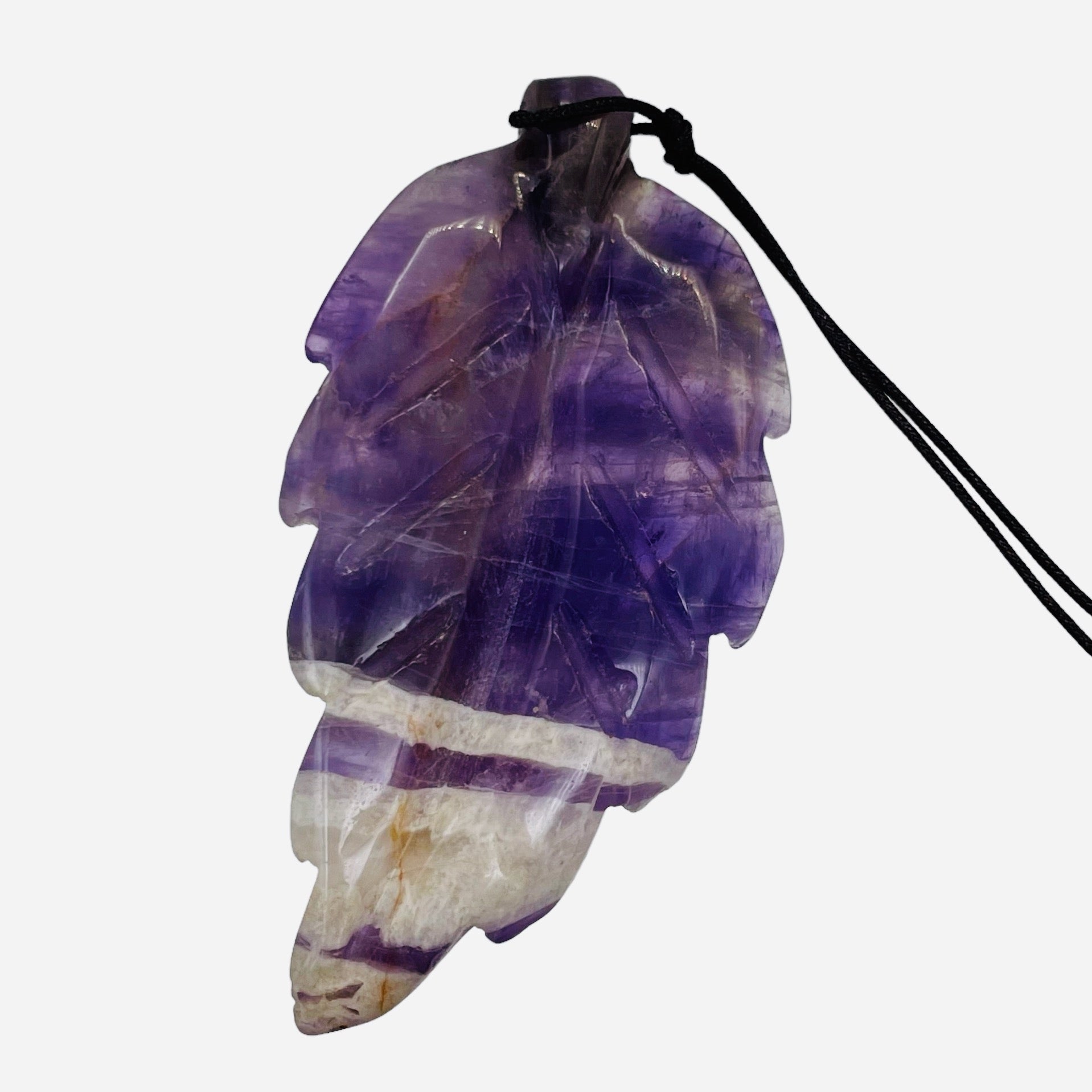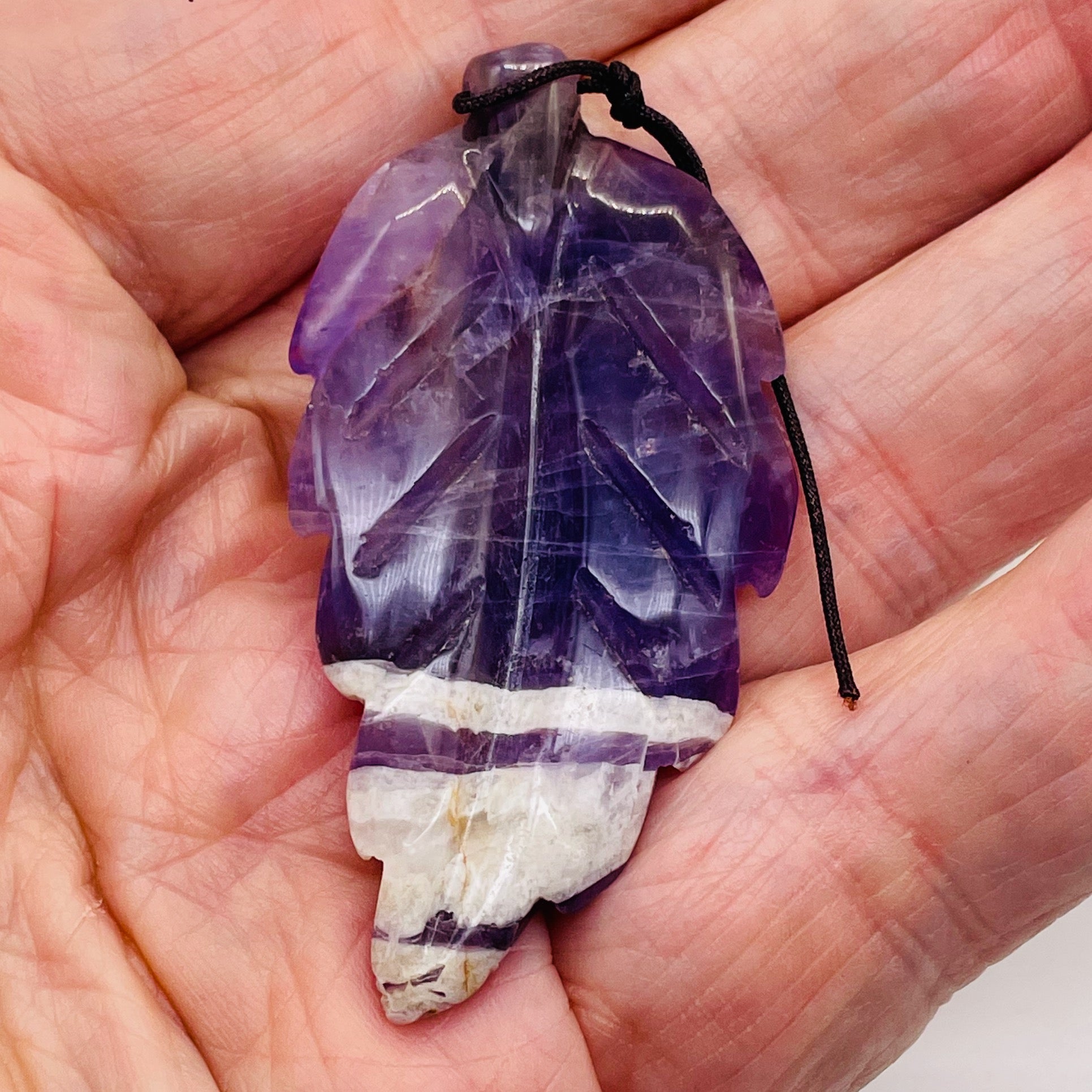 Gorgeous Hand-Carved Amethyst Leaf Pendant ' Purple White ' 60x30x8mm ' Natural Gemstone from Brazil
