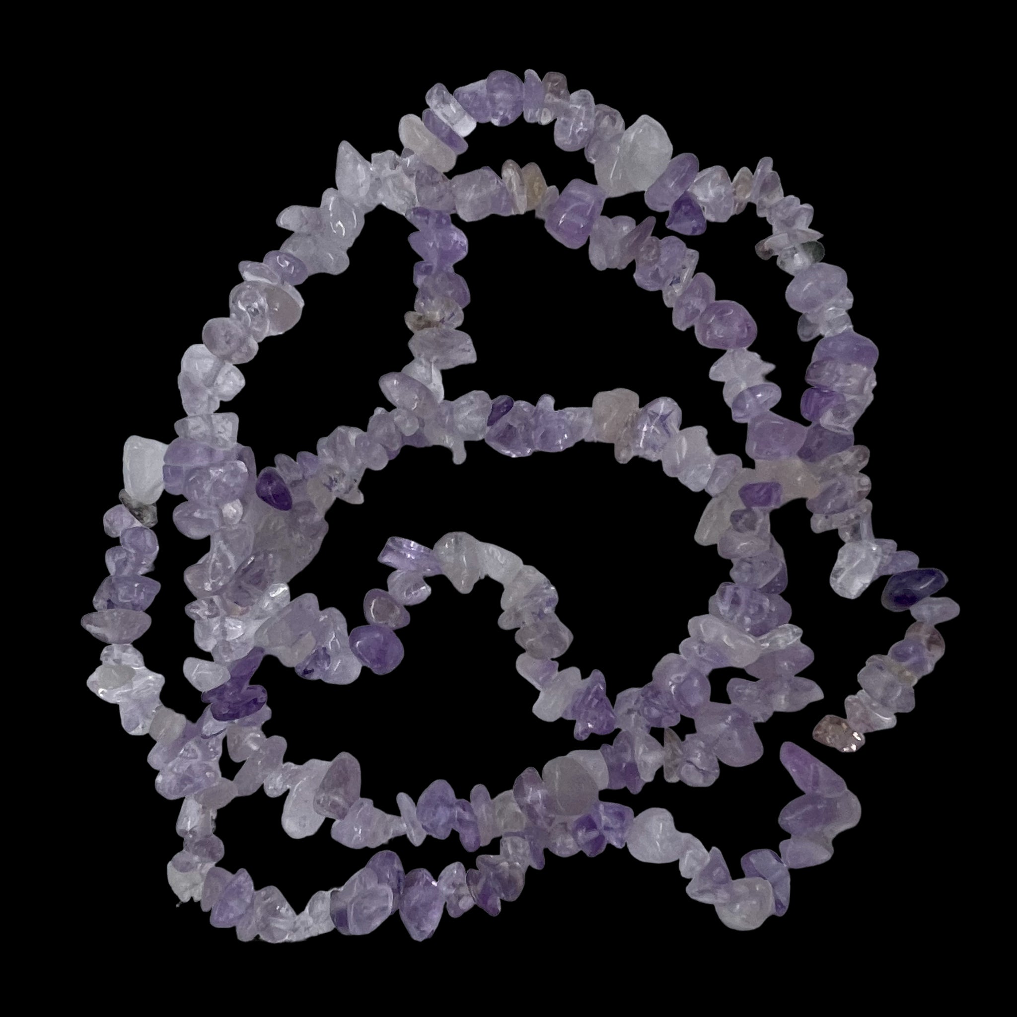 Embrace the beauty and tranquility of Lavender Purple Amethyst Strand Chips, and let their soothing energies enhance your creations and bring a sense of calm to your life.