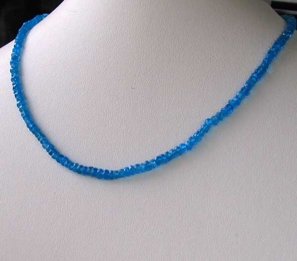 Neon Blue Apatite Faceted Roundel Semi Precious Gemstone Bead Strand