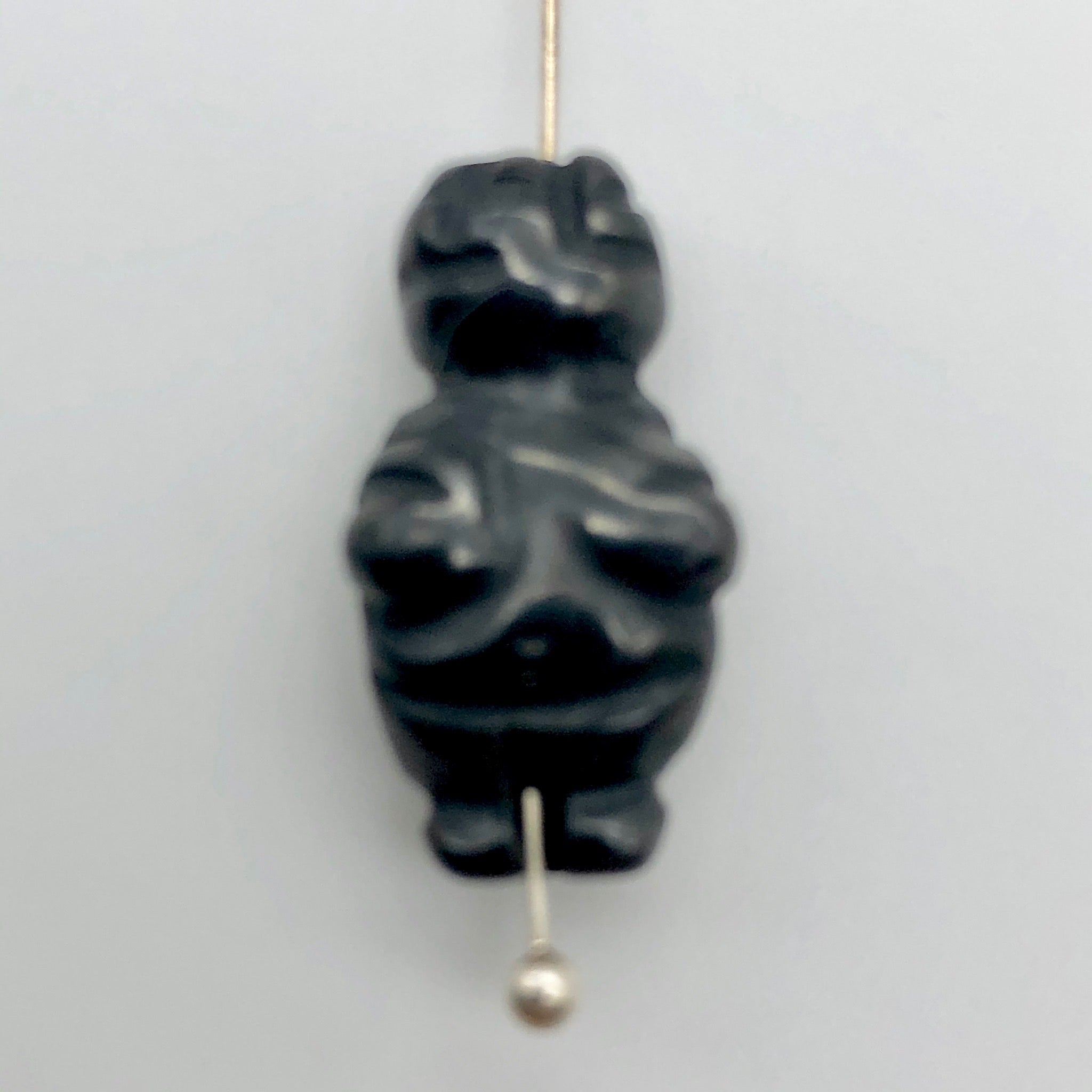 2 Carved Hematite Goddess of Willendorf Beads | 20x9x7mm | Silver black