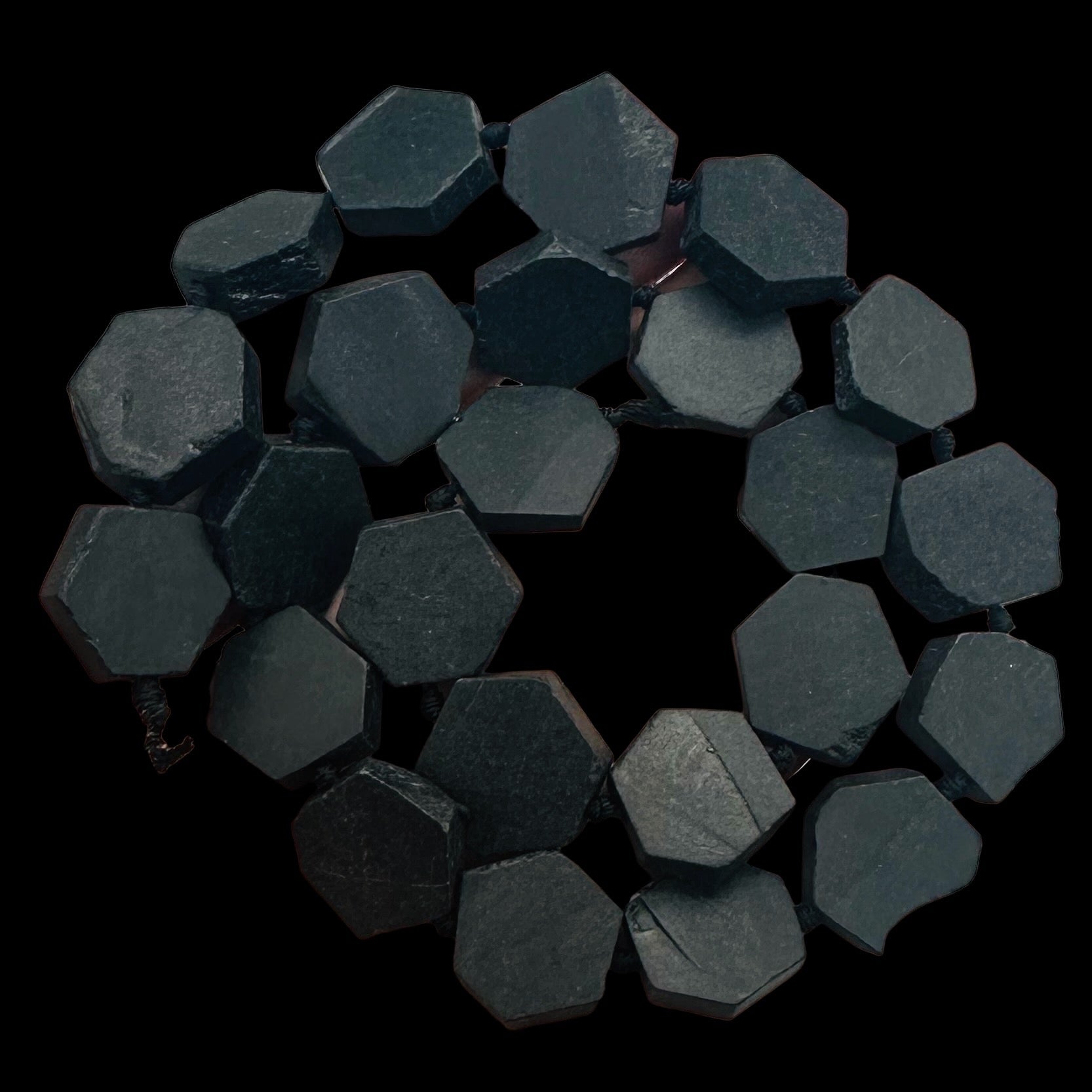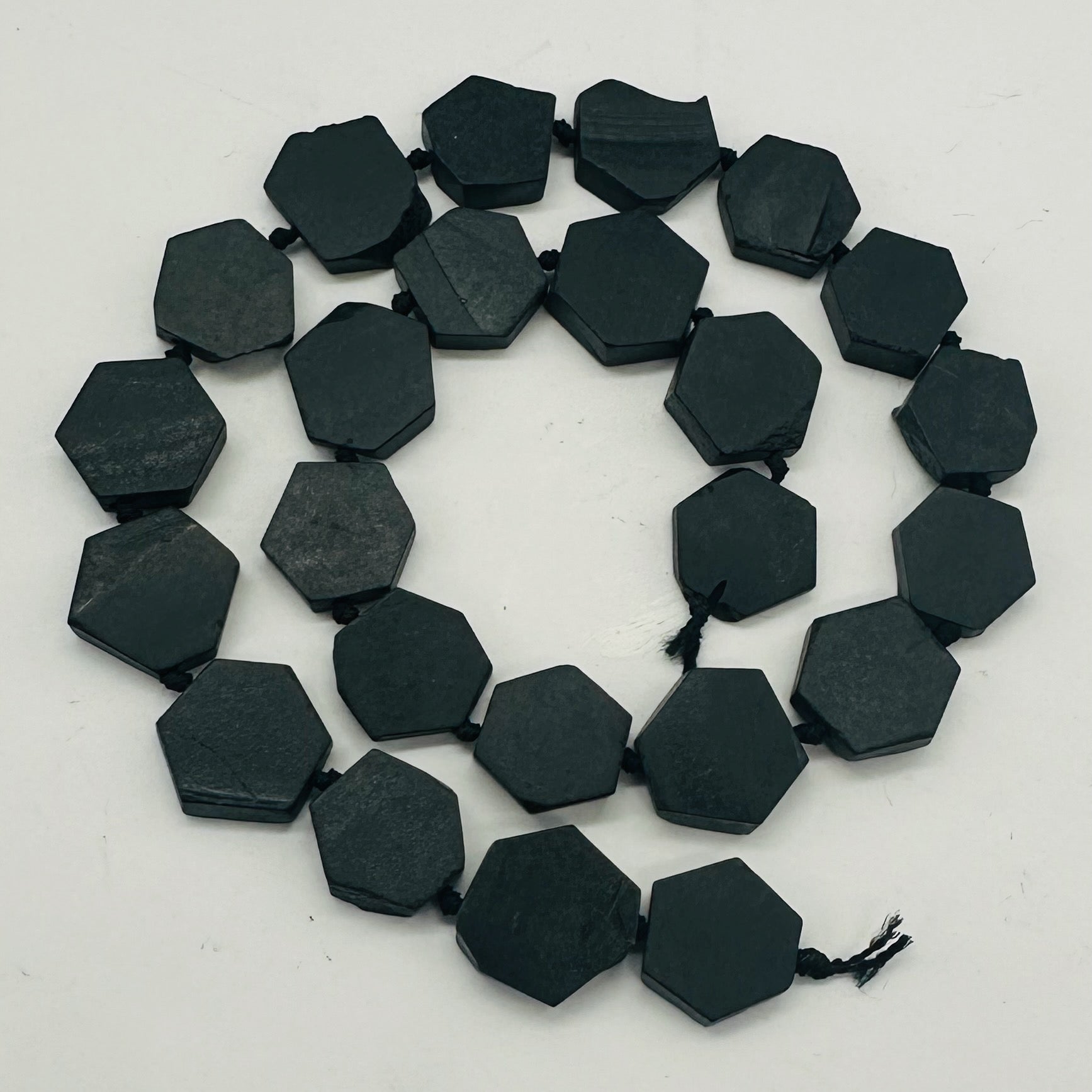 BLACK STONE - AFRICA HEXAGON COIN BEAD STRAND!!!