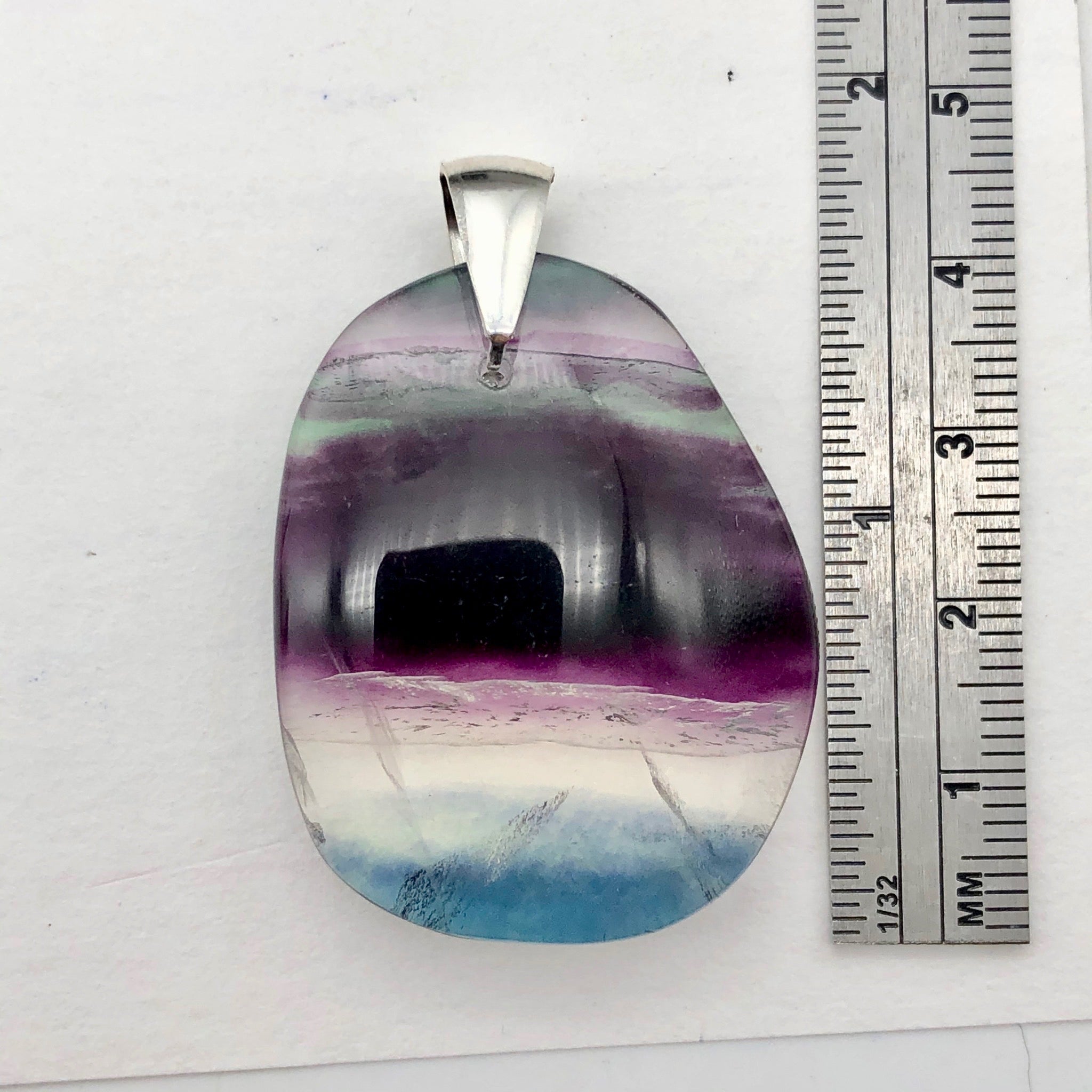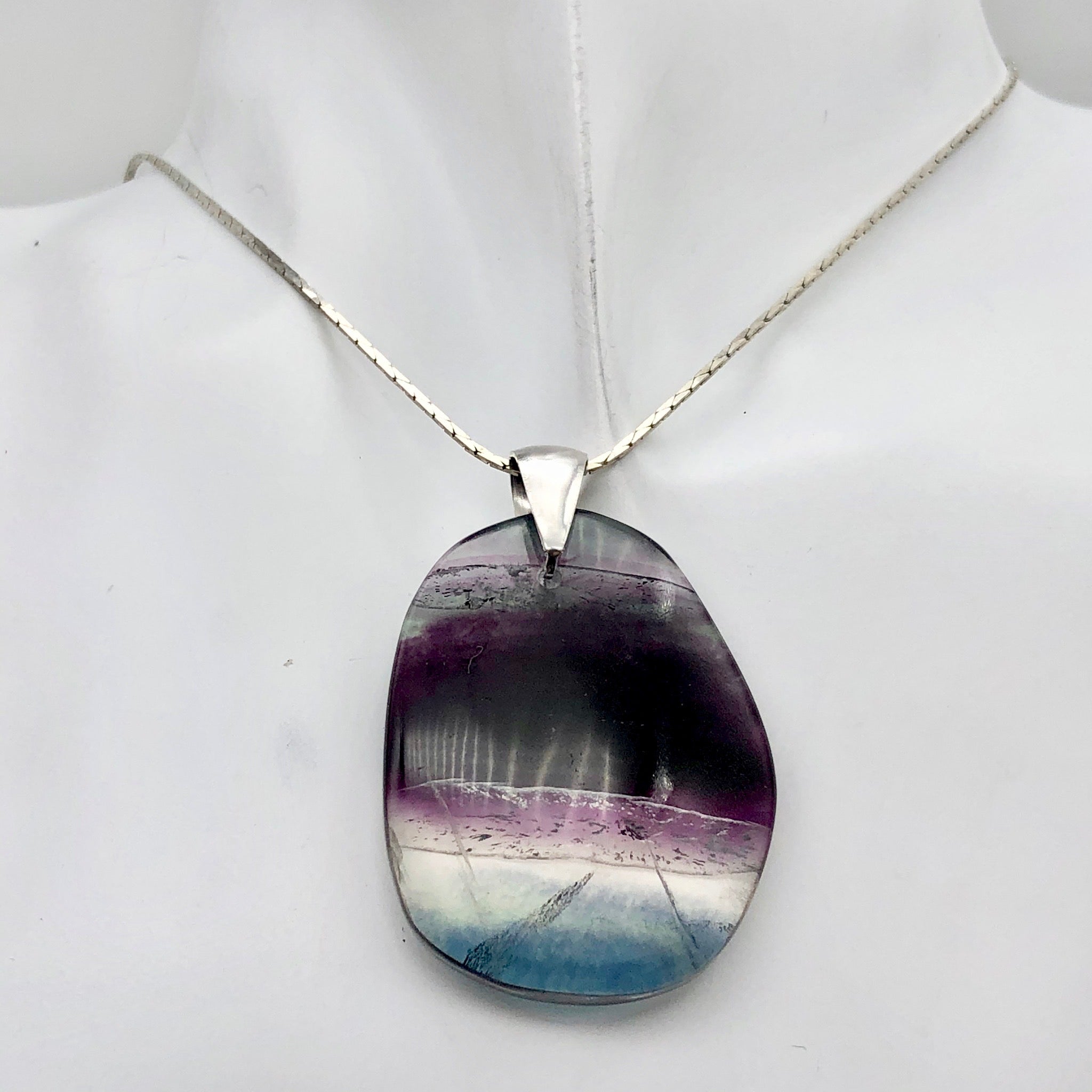 Exquisitely dramatic multi-hued Natural Fluorite Sterling Silver Pendant!