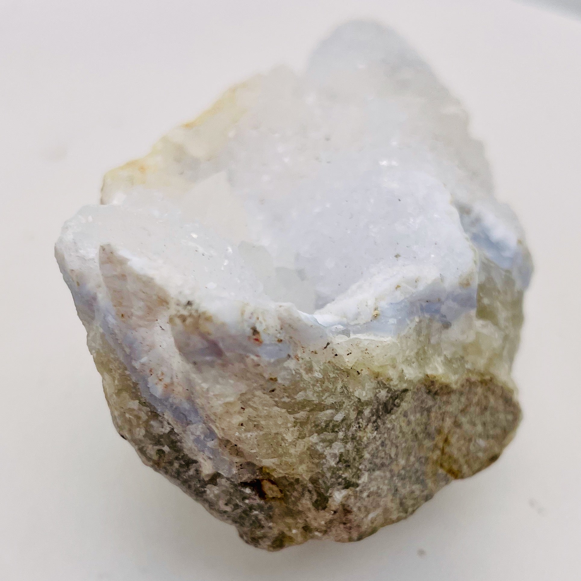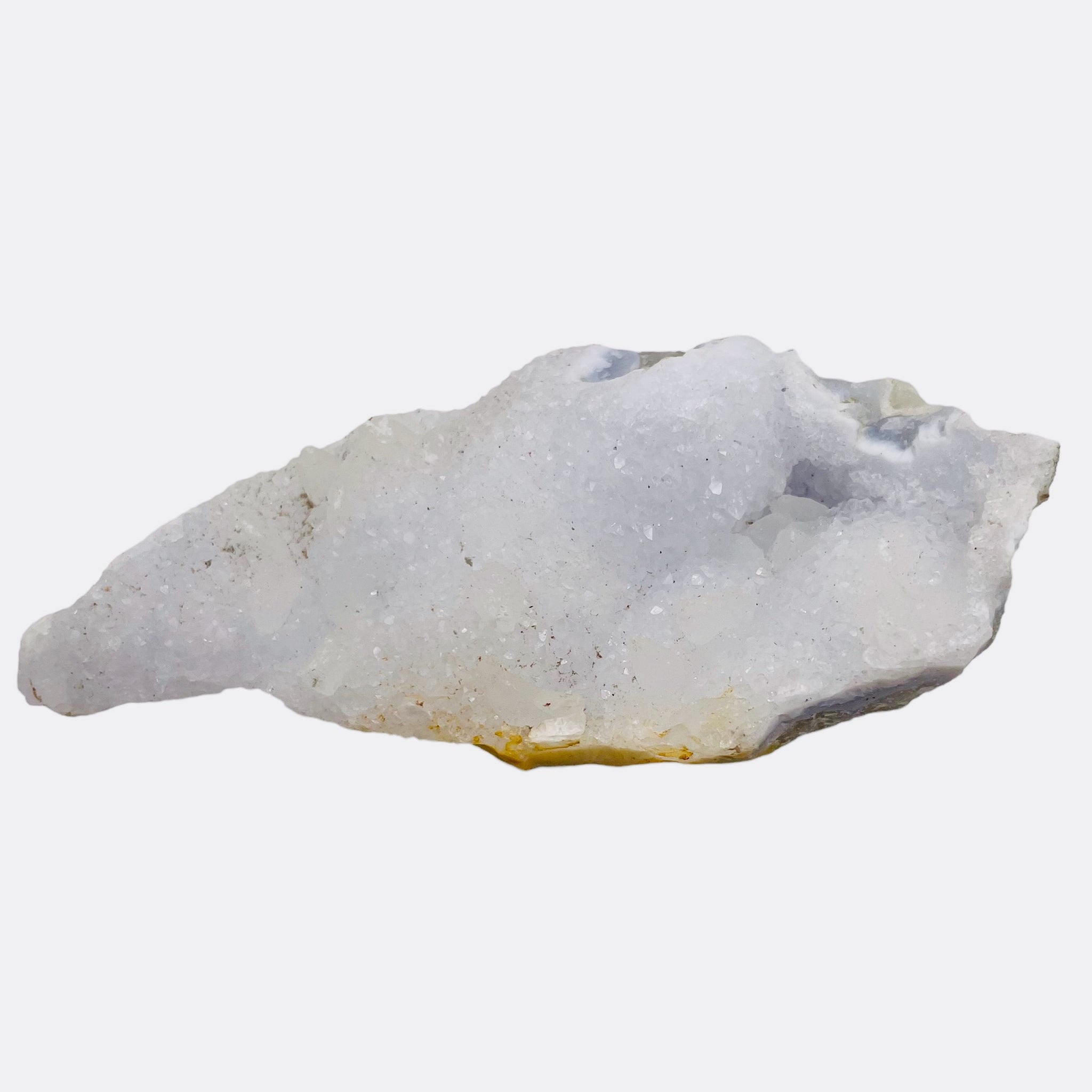 Indulge in the beauty and energetic properties of this White Blue Tan Chalcedony Quartz rock specimen. Its unique colors and natural druzy formations make it a wonderful addition to any crystal collection. Order now and embrace the nurturing energy of this exquisite Chalcedony Quartz specimen from Brazil!