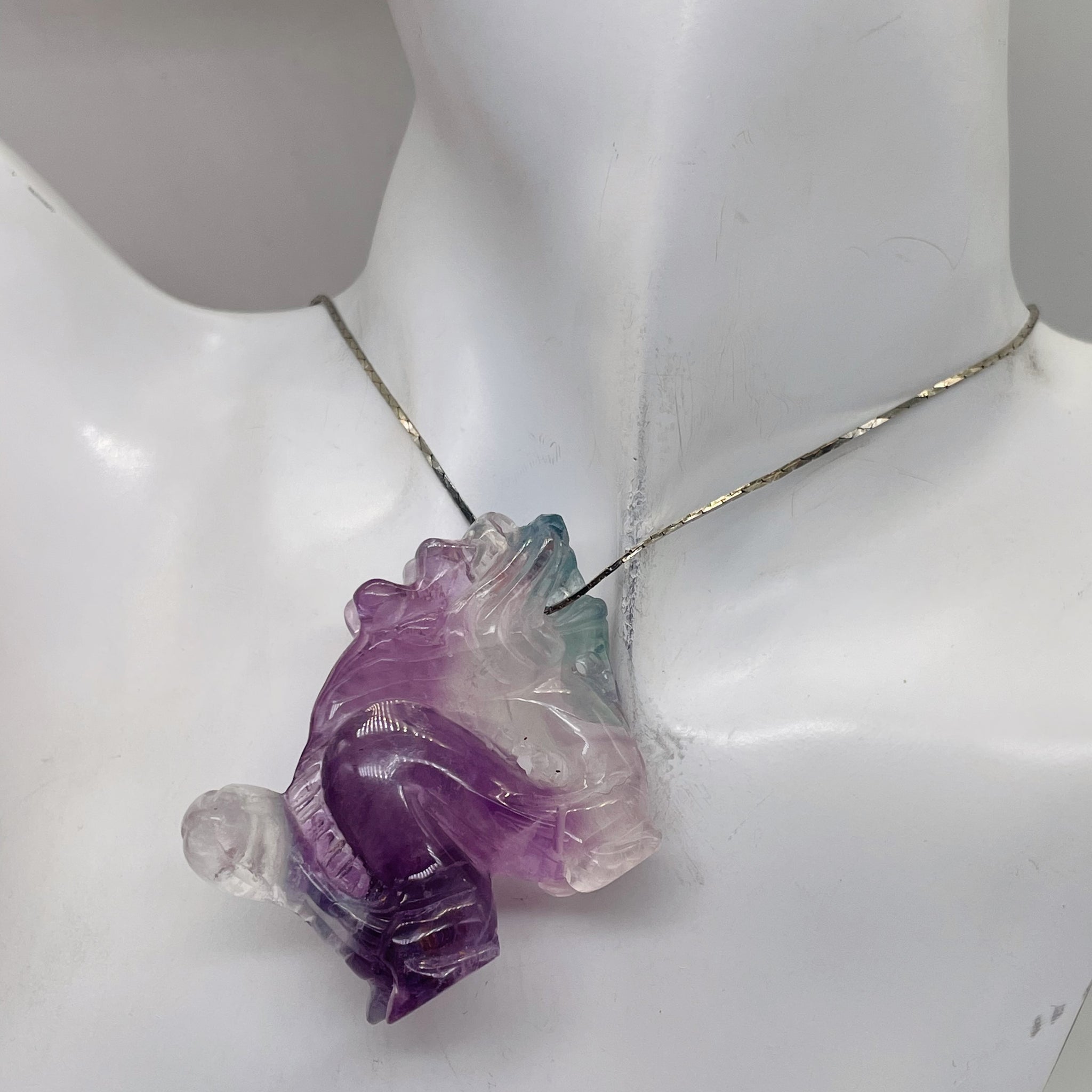 Purple Green Fluorite Carved Dragon to Display or to Wear.