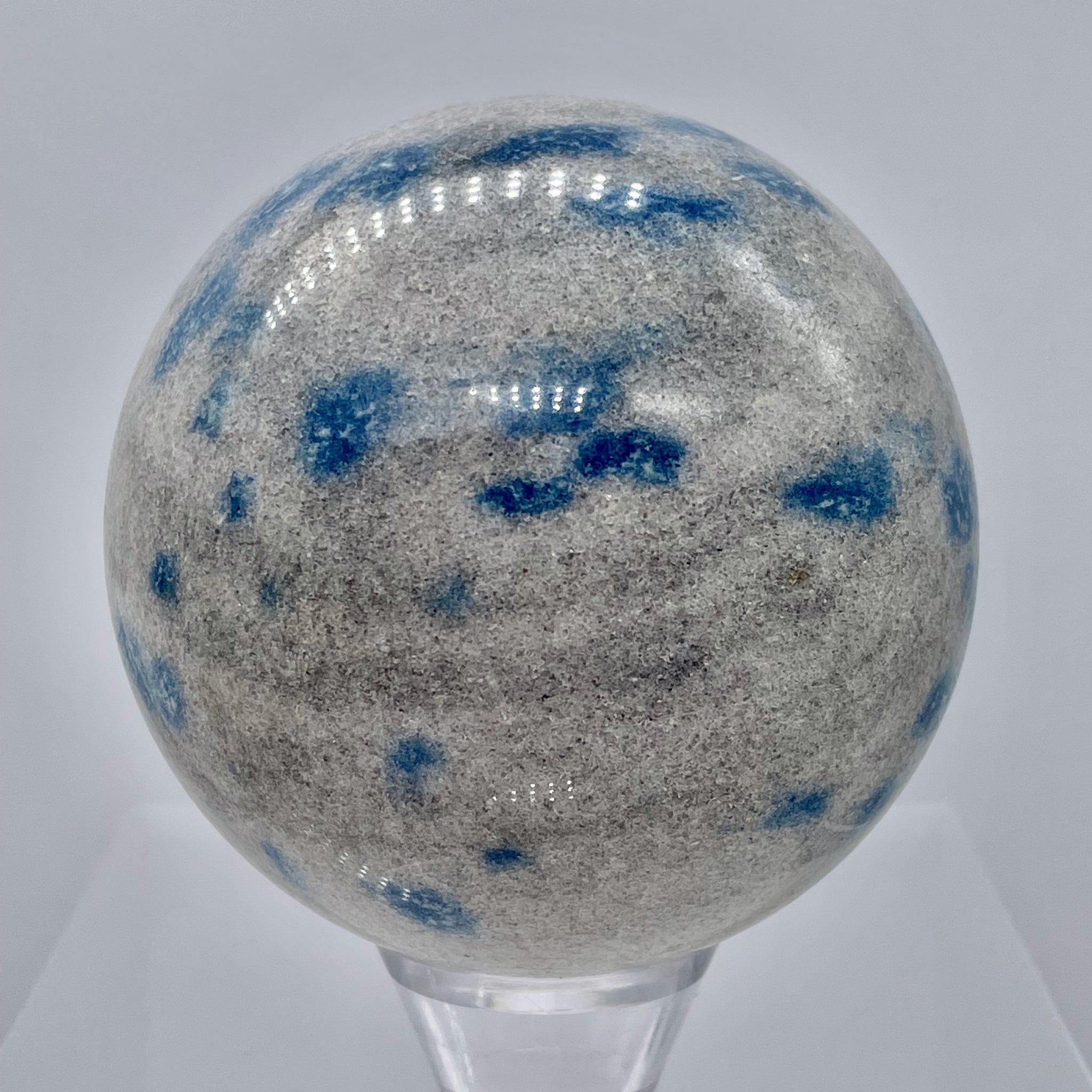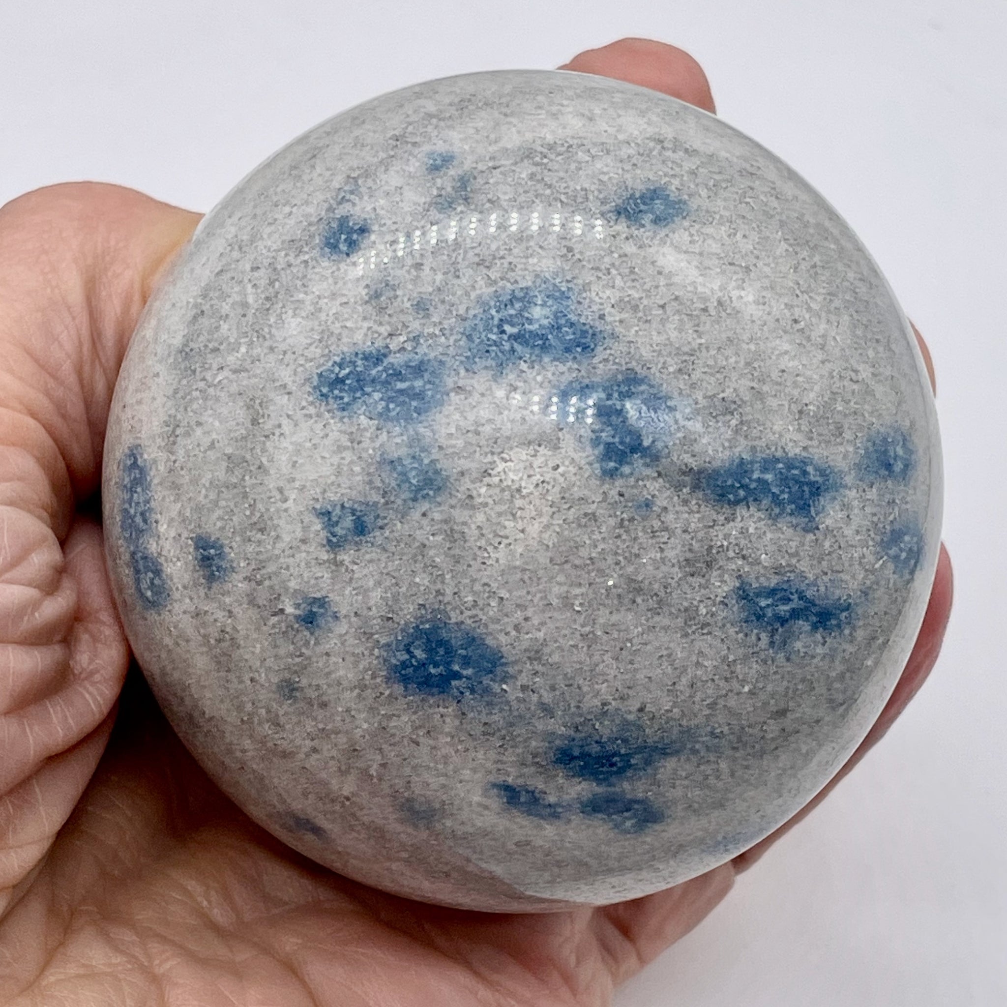 The gentle blue spots in this wonderful white sphere give a focal point for concentration as you drift off into mindful meditation and seek out your inner dreams with ease.