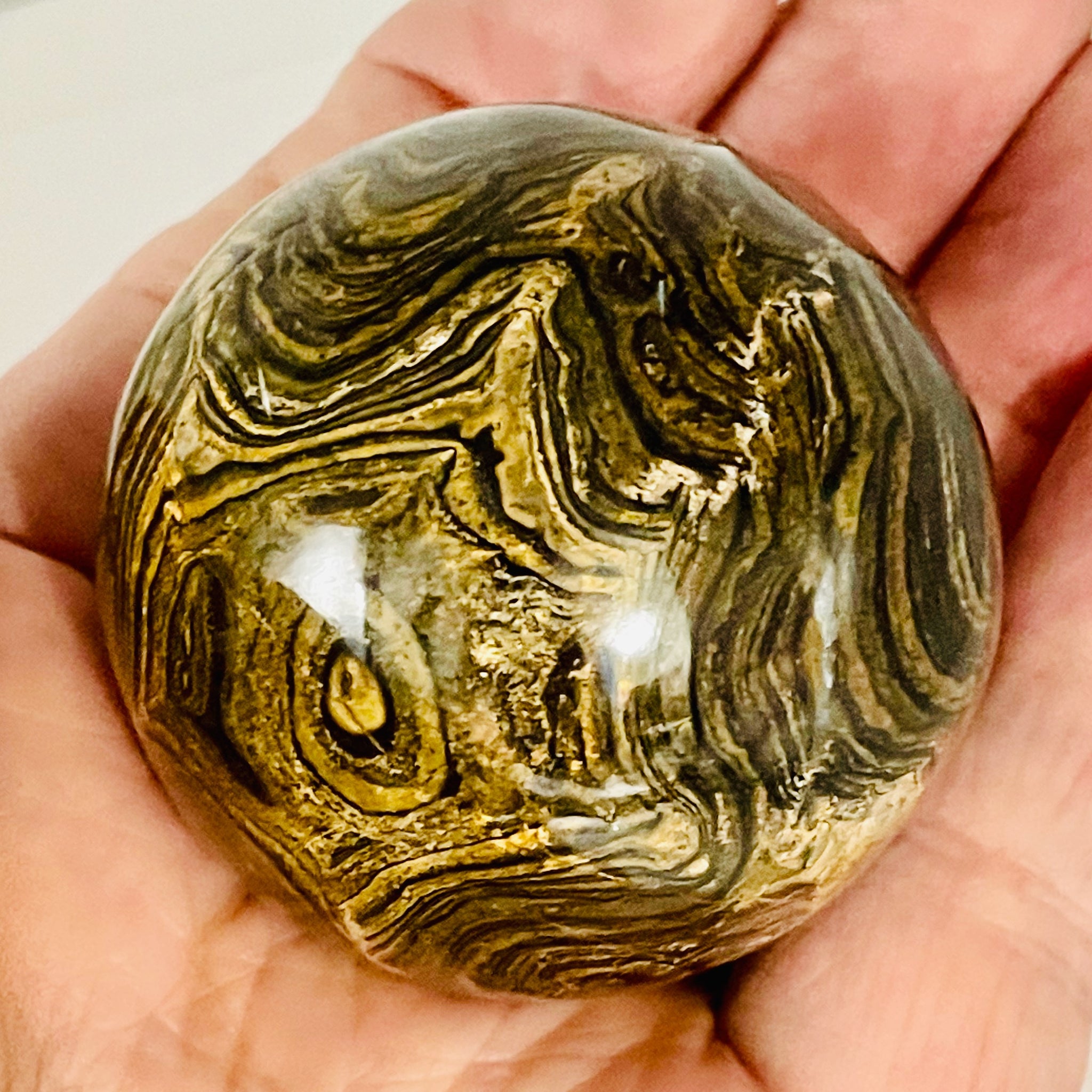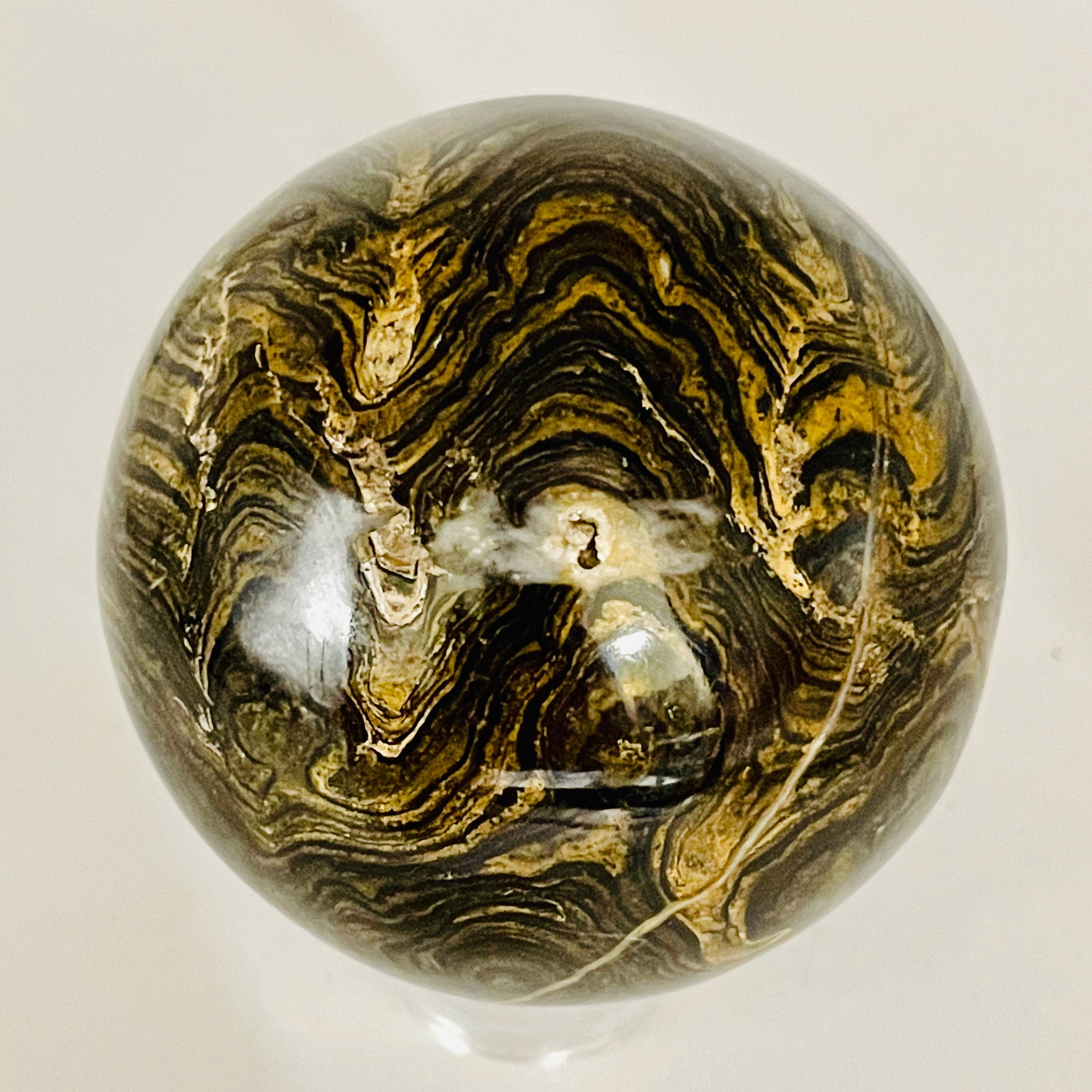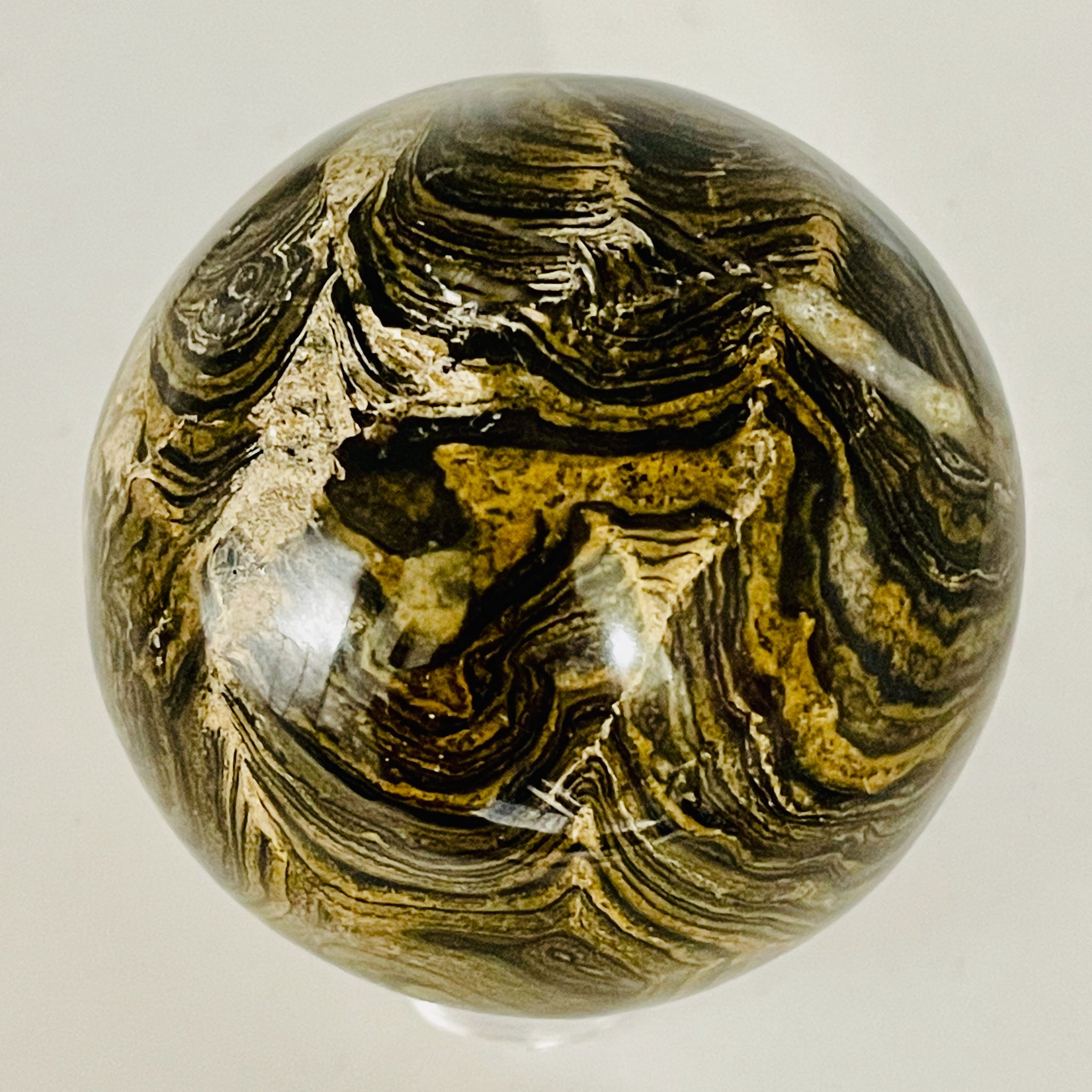 Stromatolites are fossil algae, some of the oldest fossils on earth. This gorgeous and unusual stromatolite sphere is 2.3 billion years old, from the early Proterozoic Era