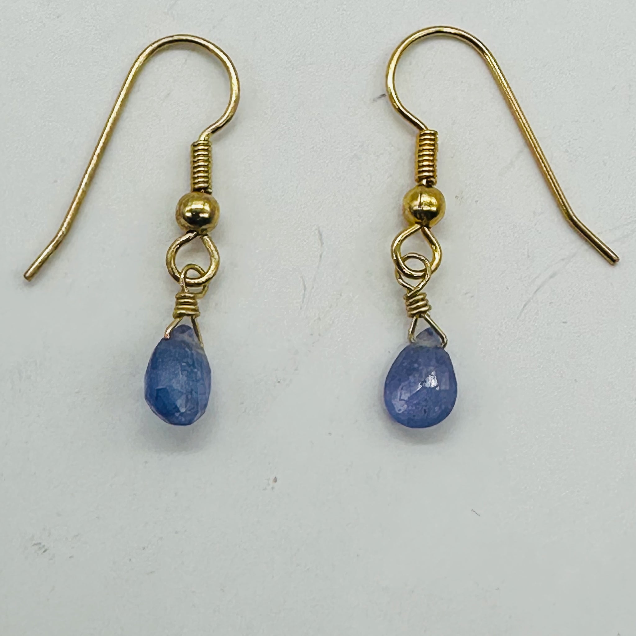 These charming 14K gold filled drop earrings feature luminous lavender Tanzanite beads. Designed with yellow gold fish hook ear wires for comfort and ease, these earrings offer timeless elegance with a graceful, delicate swing. Their soft color palette makes them perfect for both everyday wear and special occasions.