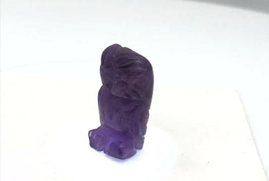 Hand-Carved Natural Amethyst Owl Bead Figurine | 21x12x9mm | Purple