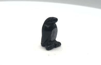 Hand-Carved Obsidian Penguin Bead Figurine! | 21.5x12.5x11mm | Black/White