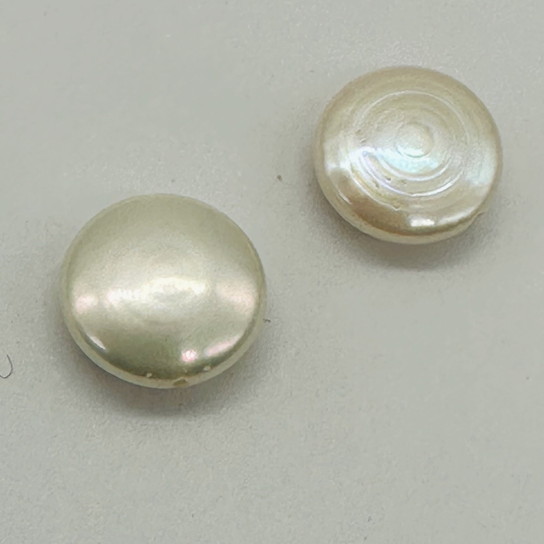 This is for two gorgeous fully drilled creamy freshwater coin pearls!! These gorgeous coin pearls are perfect for many different types of jewelry making! These beautiful Fresh Water Pearls beg to be used in interesting and original pieces as well as the more traditional that speaks of luxury and elegance!! These sea 'gems' are complimentary to every skin tone. The background color on these pearls is a lovely cool white with a hints of blue, pink and many other beautiful highlights! The skin is highly luminescent and extremely rich with only a few blemishes and circles! Your two pearls will be selected from the those shown in the images!