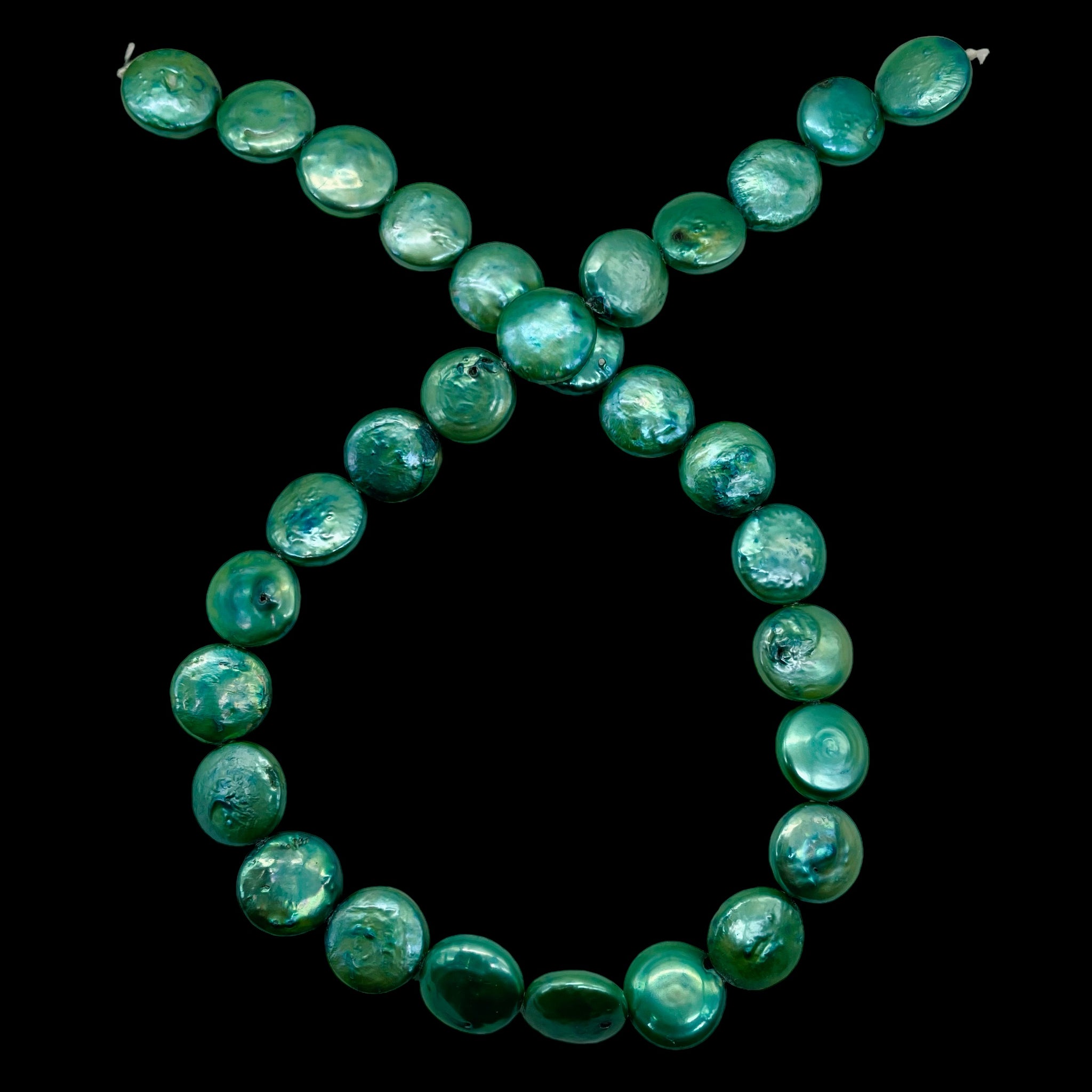 BEAUTIFUL GREEN Freshwater Coin Pearls!