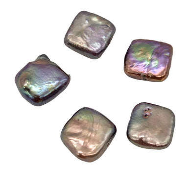 5 Beads of Peacock Bronze Square Coin FW Pearls 009454