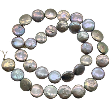 2 Ebony Rainbow 10-12mm Coin Pearls 4481