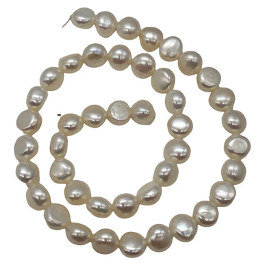 Creamy White 9mm to 10mm Button FW Pearl Strand 104500