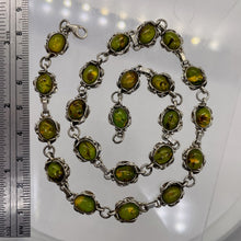 This stunning Amber Sterling Silver Bezel Set Necklace features a beautiful array of 8x6mm amber stones in vibrant green, sunny yellow, and royal purple shades. Elegantly set in sterling silver, this 16" necklace is perfect for adding a touch of colorful elegance to your jewelry collection. The variety of hues offers a striking contrast, making this necklace a statement piece for any occasion.