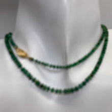 This Emerald Graduated Rondelle Necklace is a beautiful piece of jewelry made from genuine emerald beads.