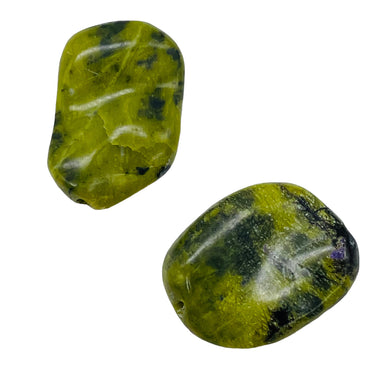 Green Serpentine with Black Matrix Beads | 21x19x6mm to 17x14x5mm | 2 Beads |