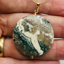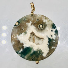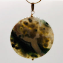 Druzy Pocket Green White Ocean Jasper 14K Gold Filled Round Pendant.