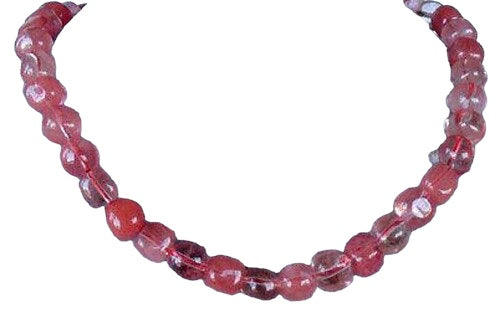 This is for 1 temporarily strung 16" strand of stunning beads (approx. 45 beads!) These magnificent beads measure anywhere from 11x9x7.5 to 9x9x6.5mm!!! These are very unusual beads with pink cherry colored Rutiles through the clear quartz. The cherry colored rutiles vary from very thin hairs to moss-like patches to delicate misty clouds some beads also have white or black inclusions!!! These are unusual roundish nugget shaped beads!