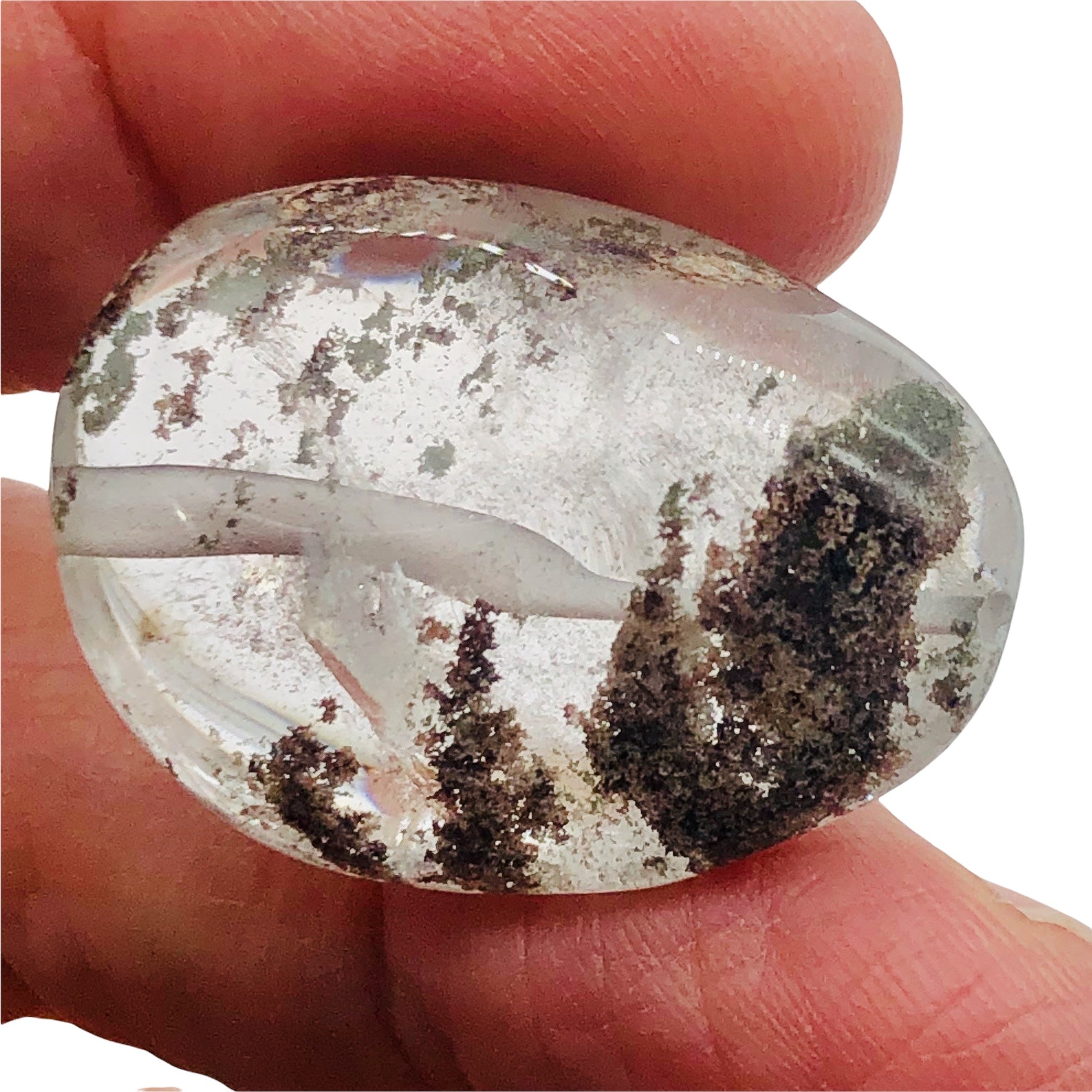 Clear Lodalite Included Quartz Oval Crystalline Focal or Pendant Shaman Bead for Jewelry Making.