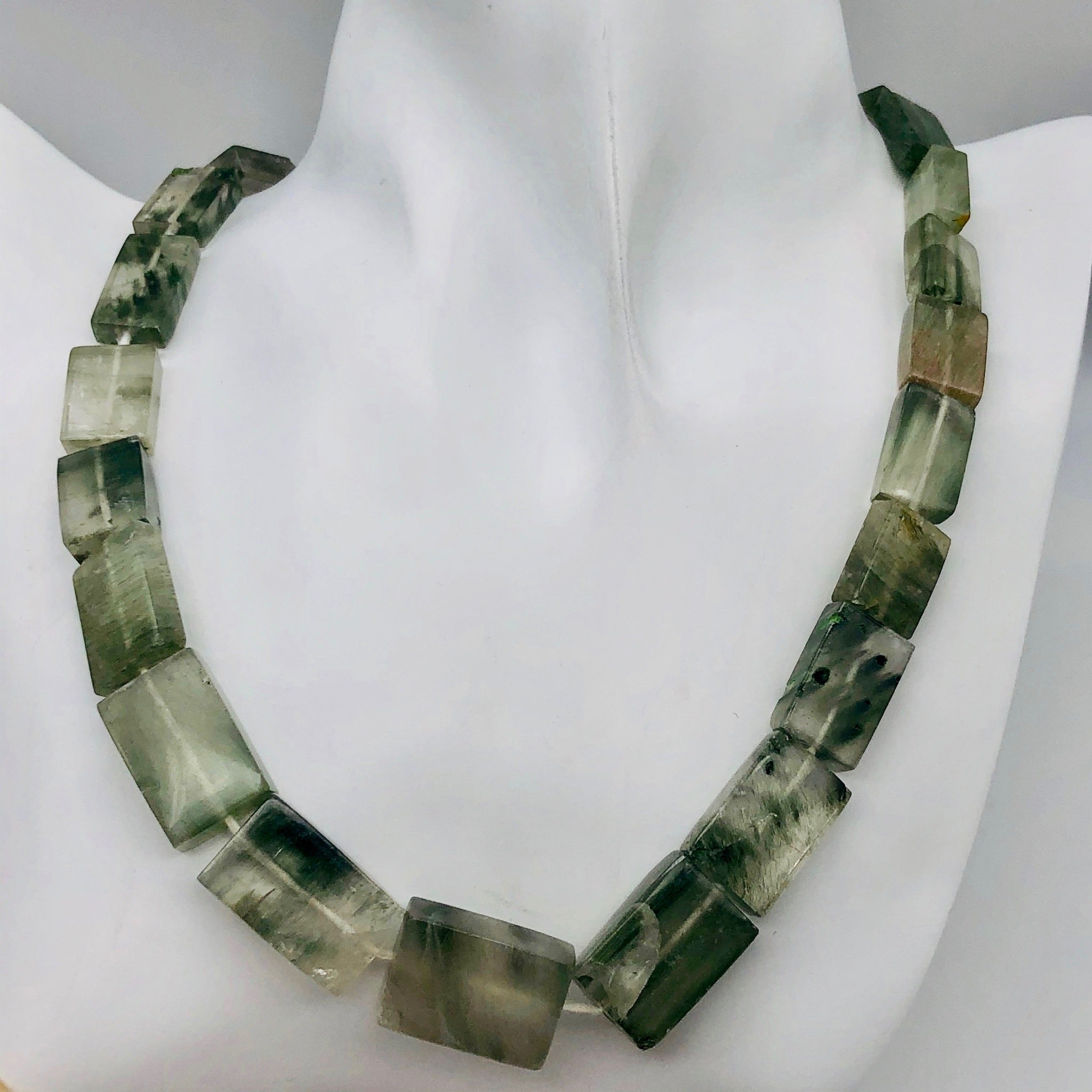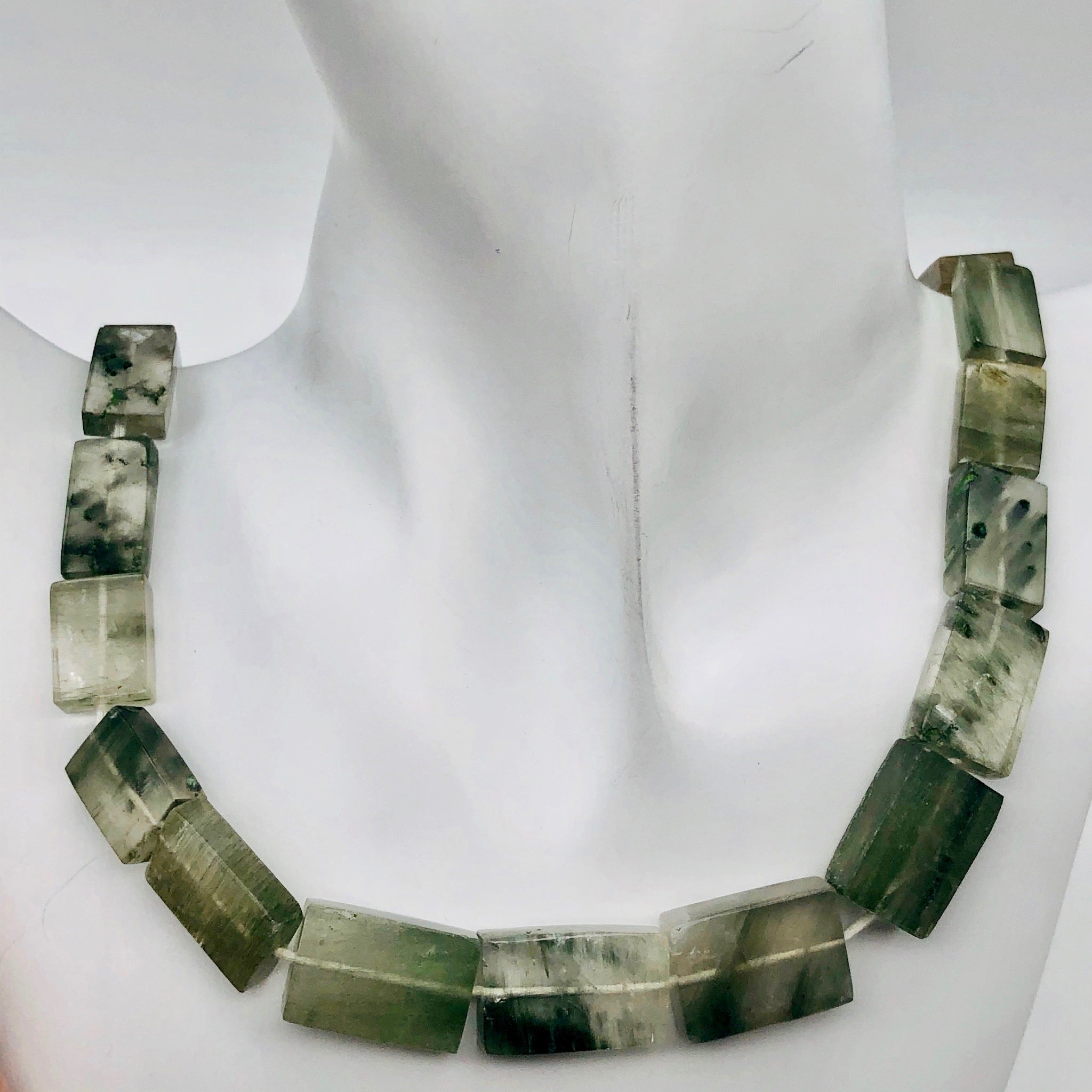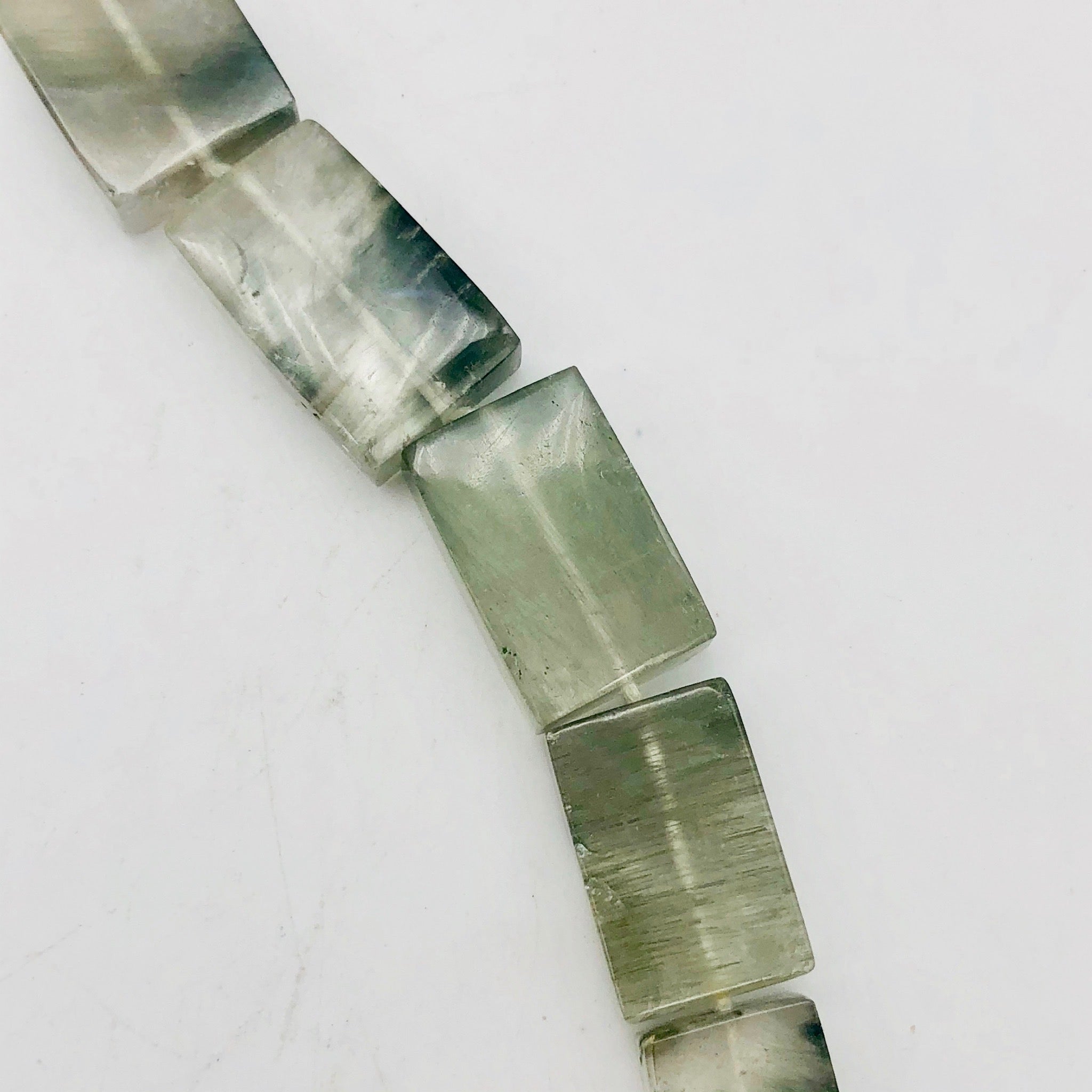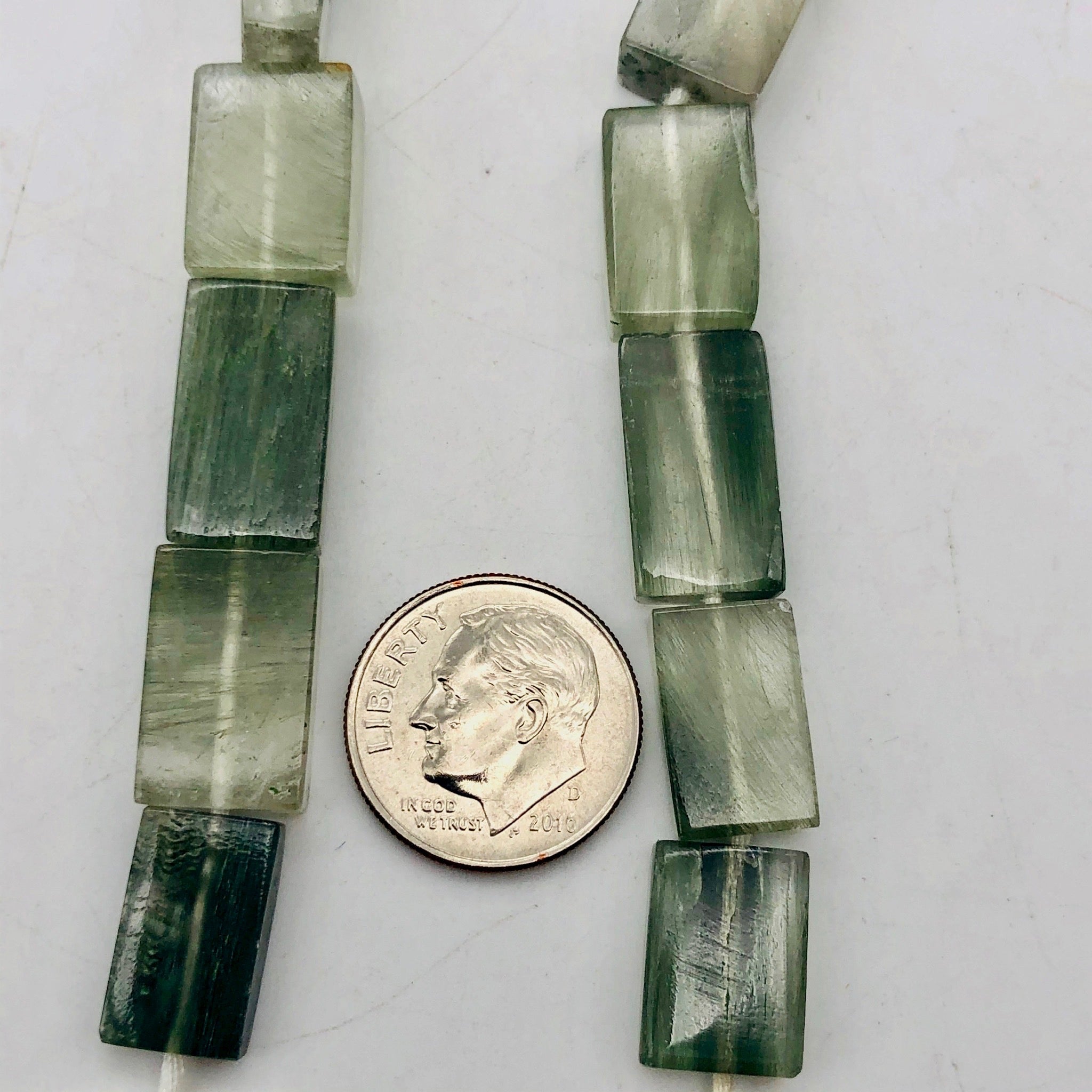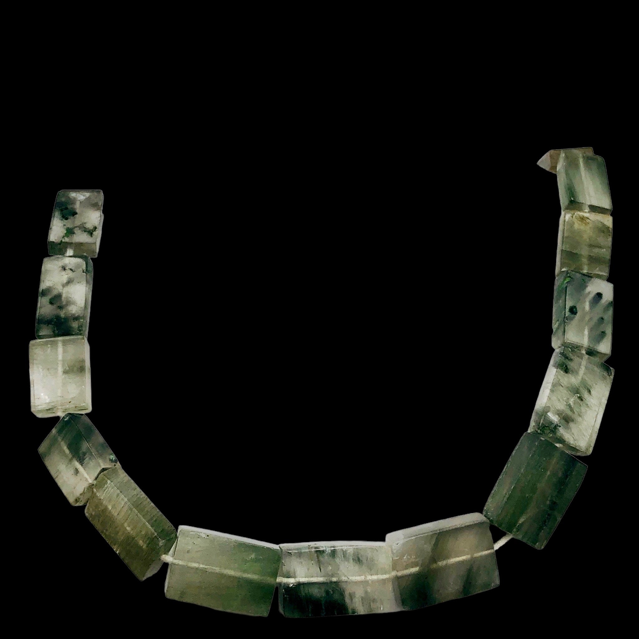 GORGEOUS SPARKLING GRADUATED 12X9mm TO 21x13mm GREEN RUTILATED QUARTZ RECTANGULAR BEAD STRAND!