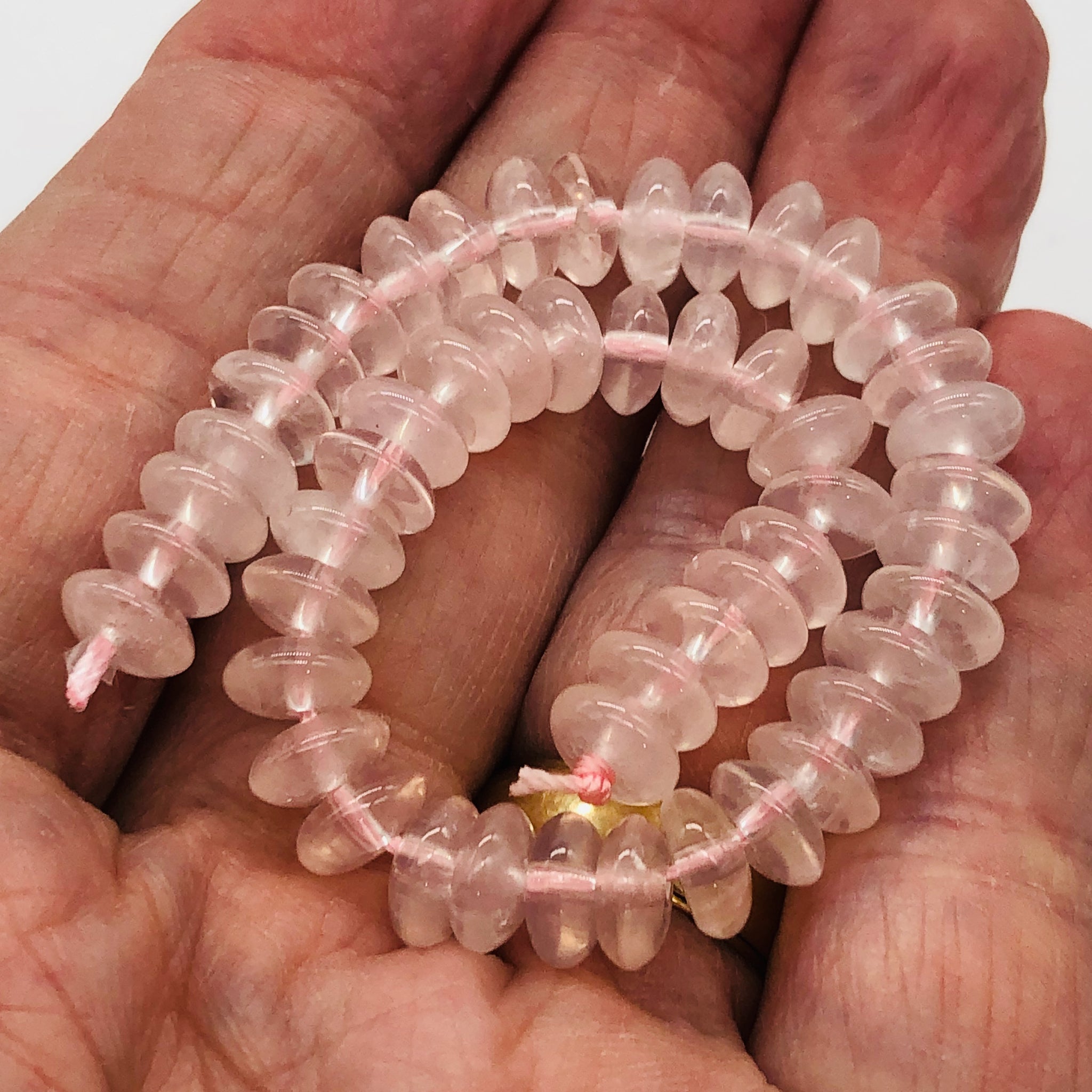 Designer Pink Rose Quartz 16" Strand Rondell beads for Jewelry Making.
