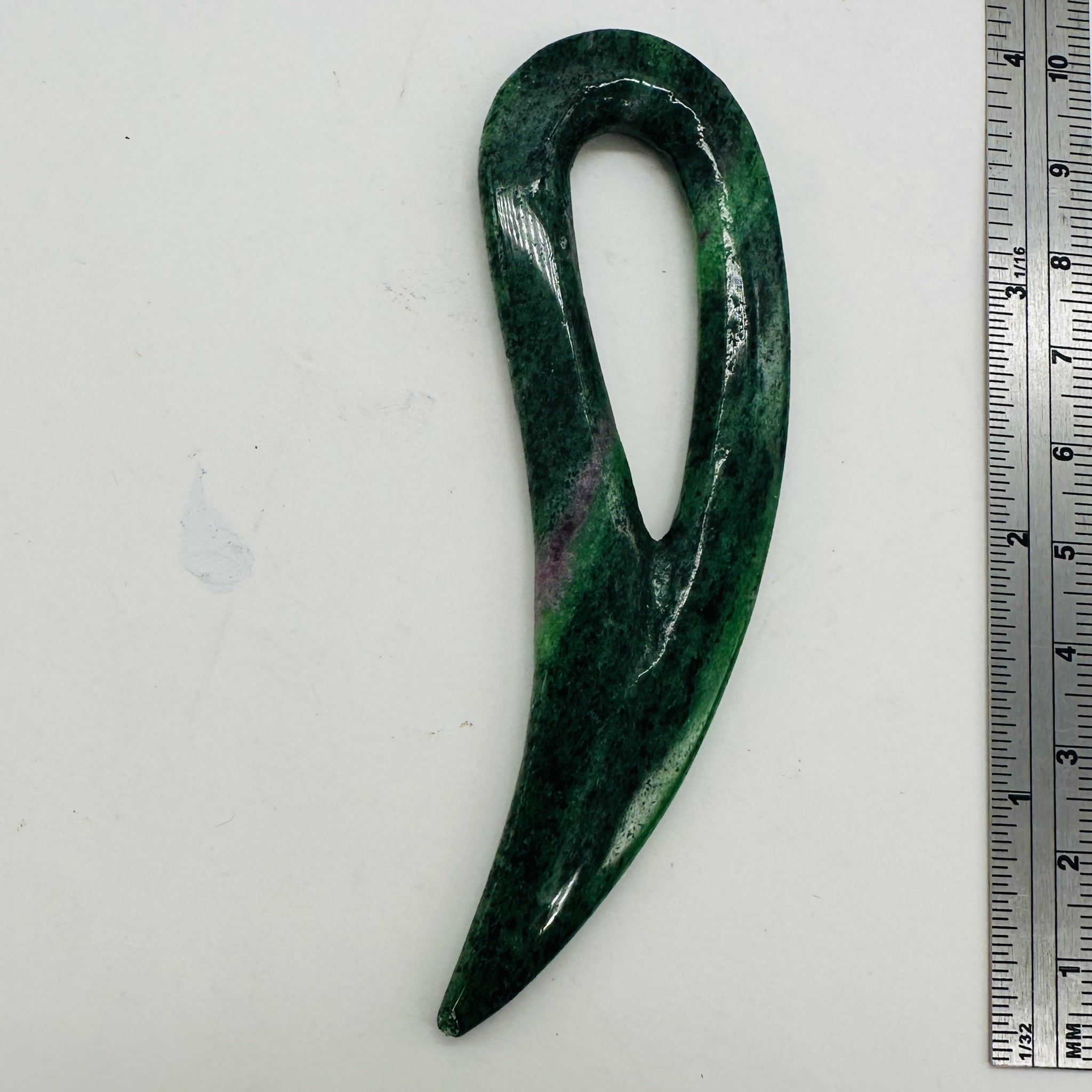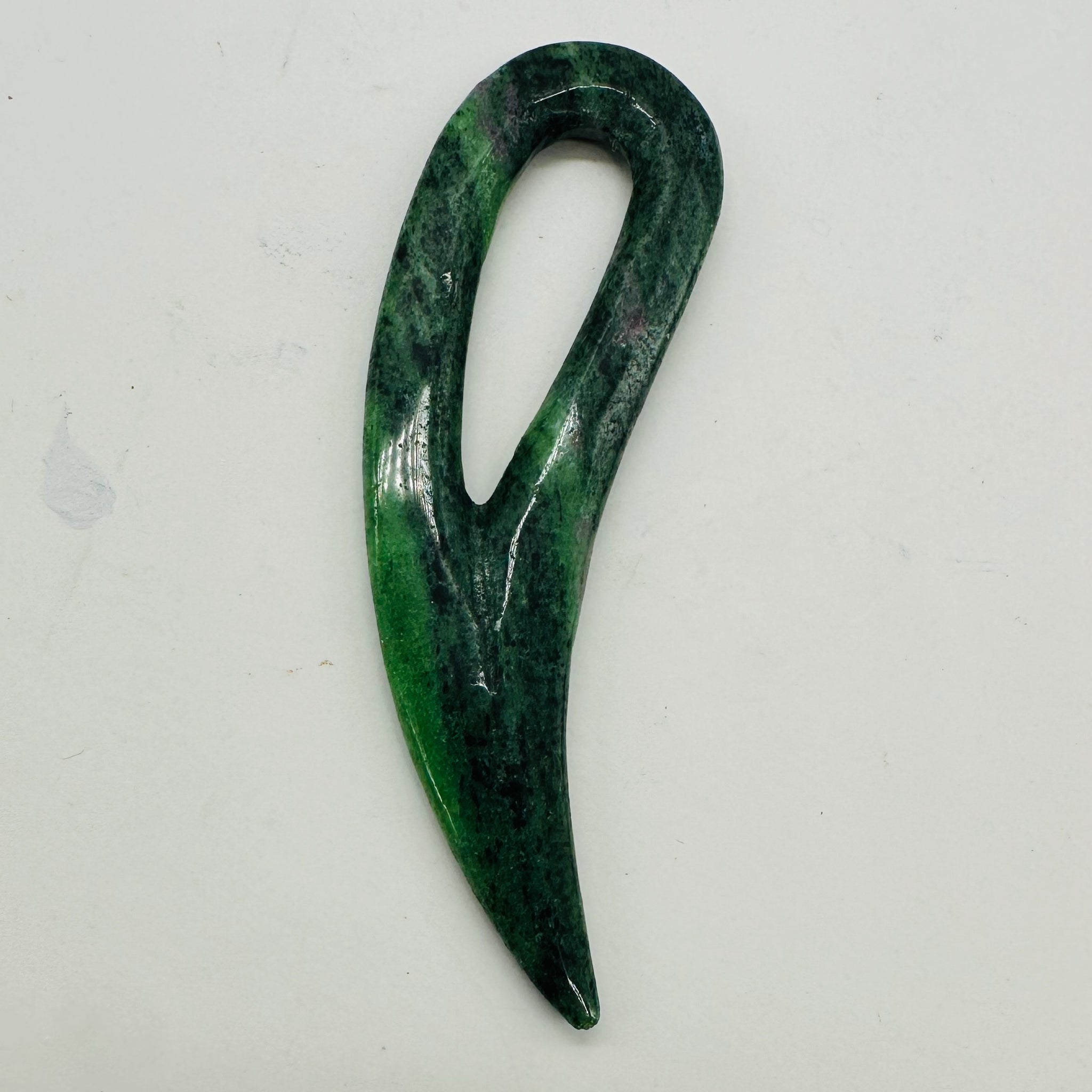 This listing is for one exquisite Ruby Zoisite Comma Pendant Bead measuring 94x28x6mm. The vibrant mix of lush green zoisite and deep ruby red creates a striking contrast that makes this piece truly unique. The bead is beautifully shaped in a flowing comma form and features a 35x12mm opening, making it perfect for creating a bold statement pendant or centerpiece in your jewelry designs.
