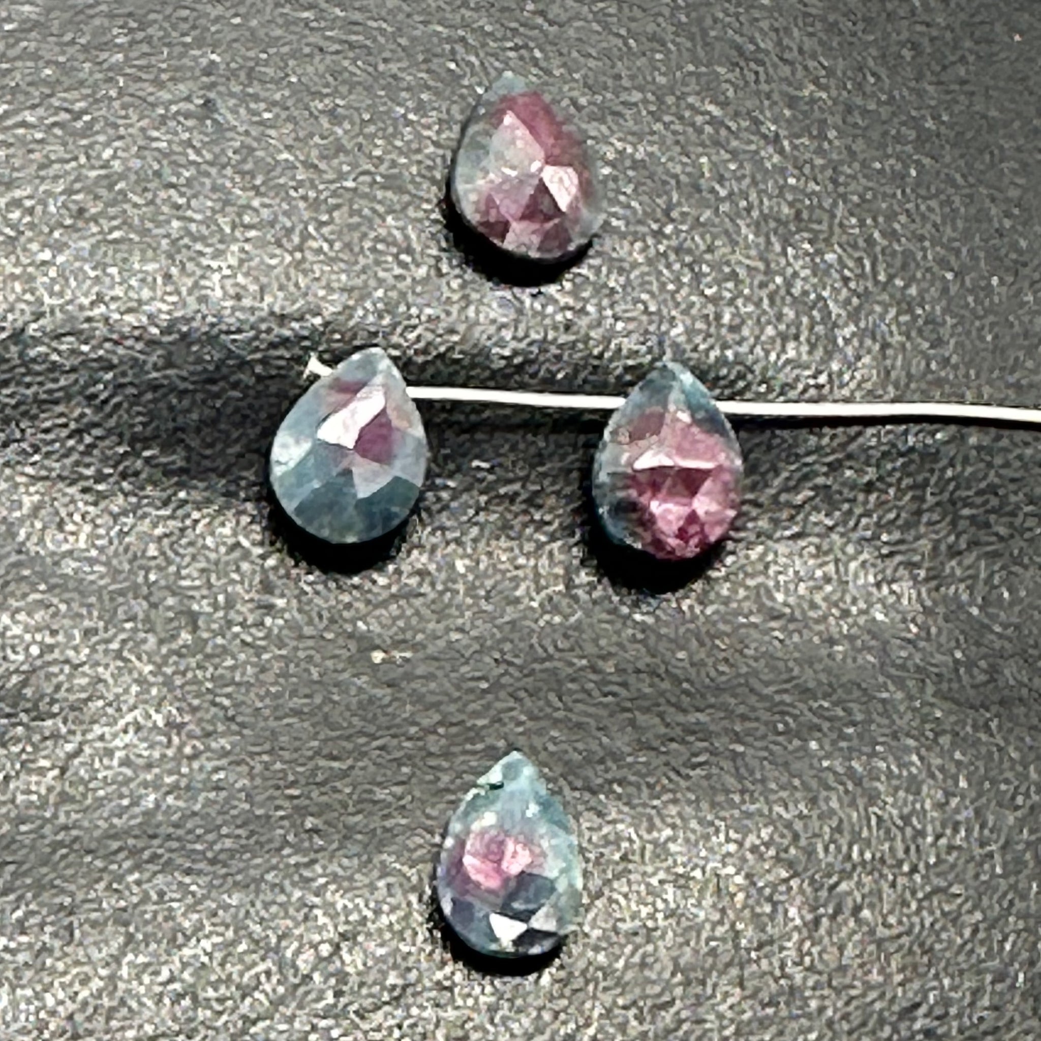 Ruby Zoisite Briolette Bead 9x6x3mm ' Flat Pear Green Red Gemstone ' Single Jewelry Making Bead