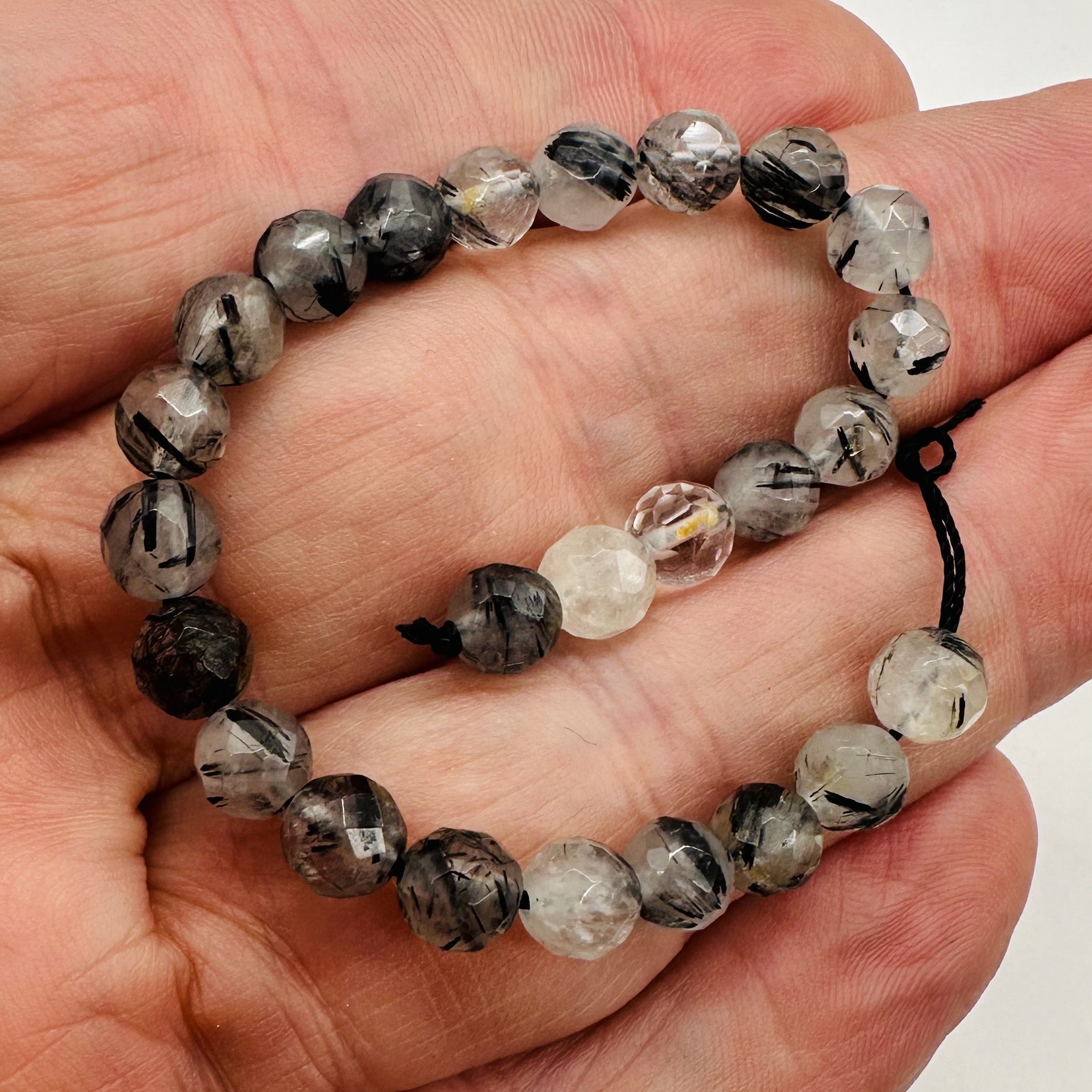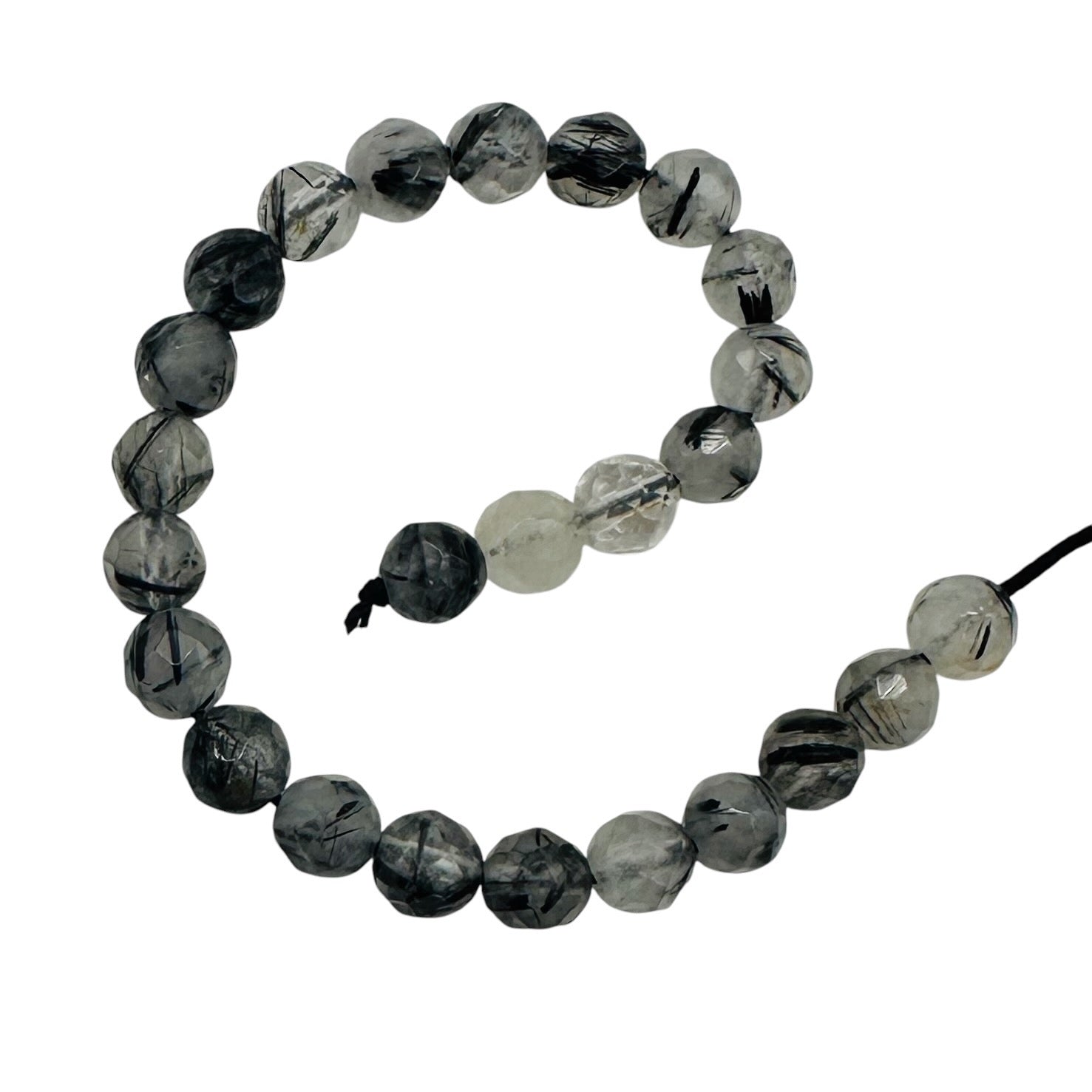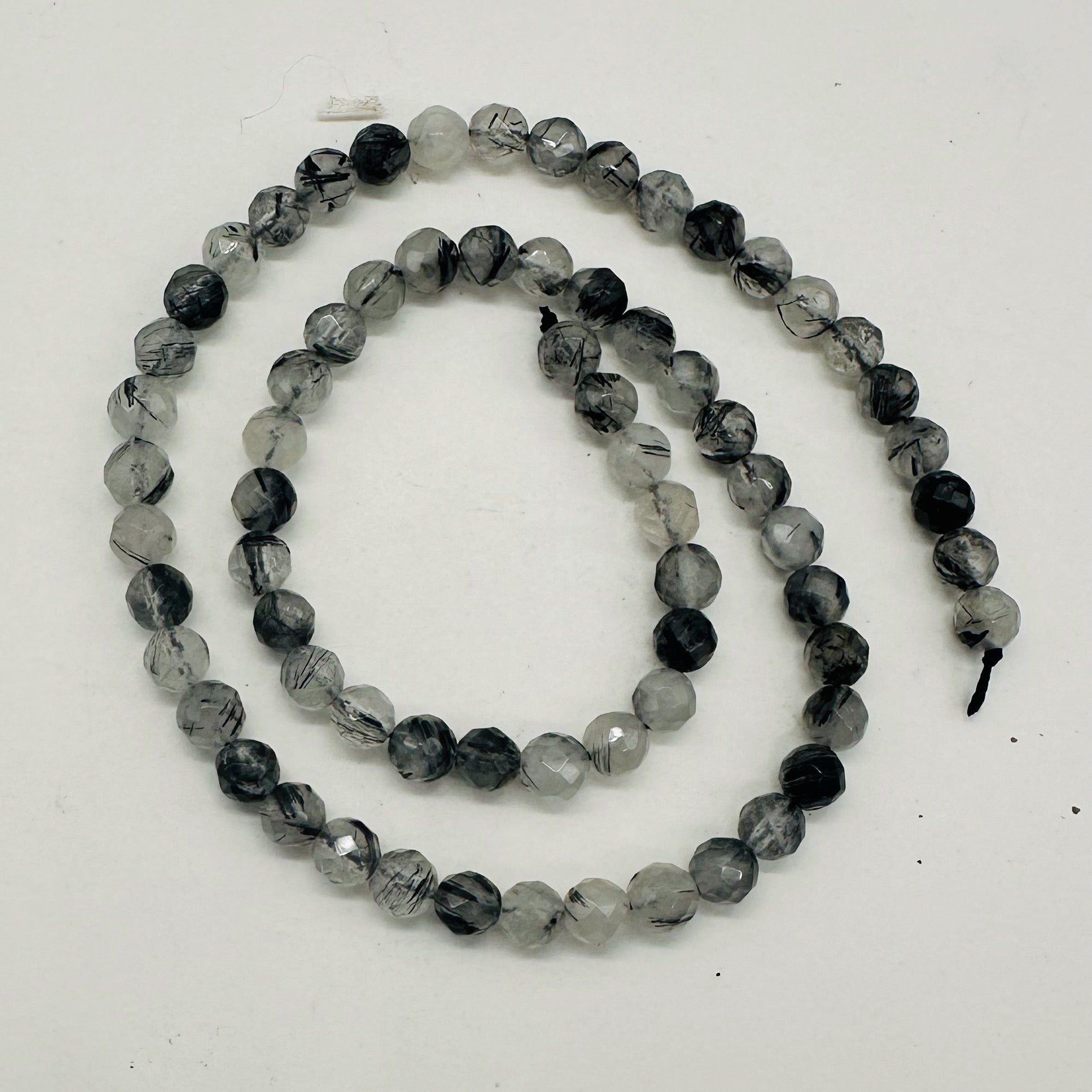 GORGEOUS! ONE TOURMALINATED QUARTZ FACETED ROUND BEAD STRAND!