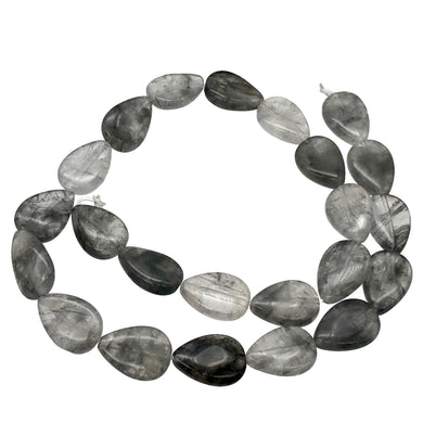 Tourmalated Quartz Teardrop Bead Half-Strand | 18x12x7 | Gray | 12 Beads